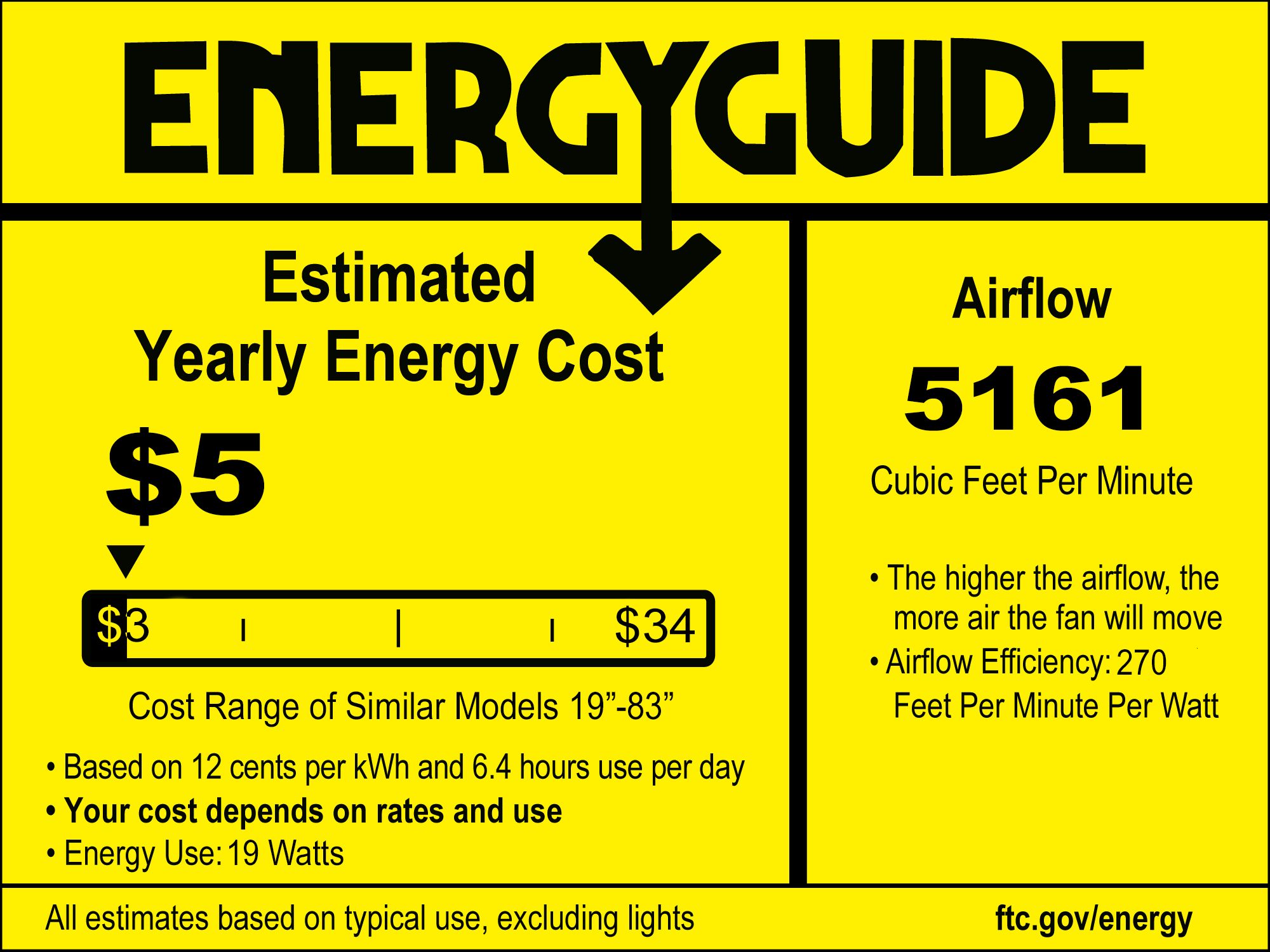 | Airflow | 5161 (Avg CFM) / 7662 (High CFM) |