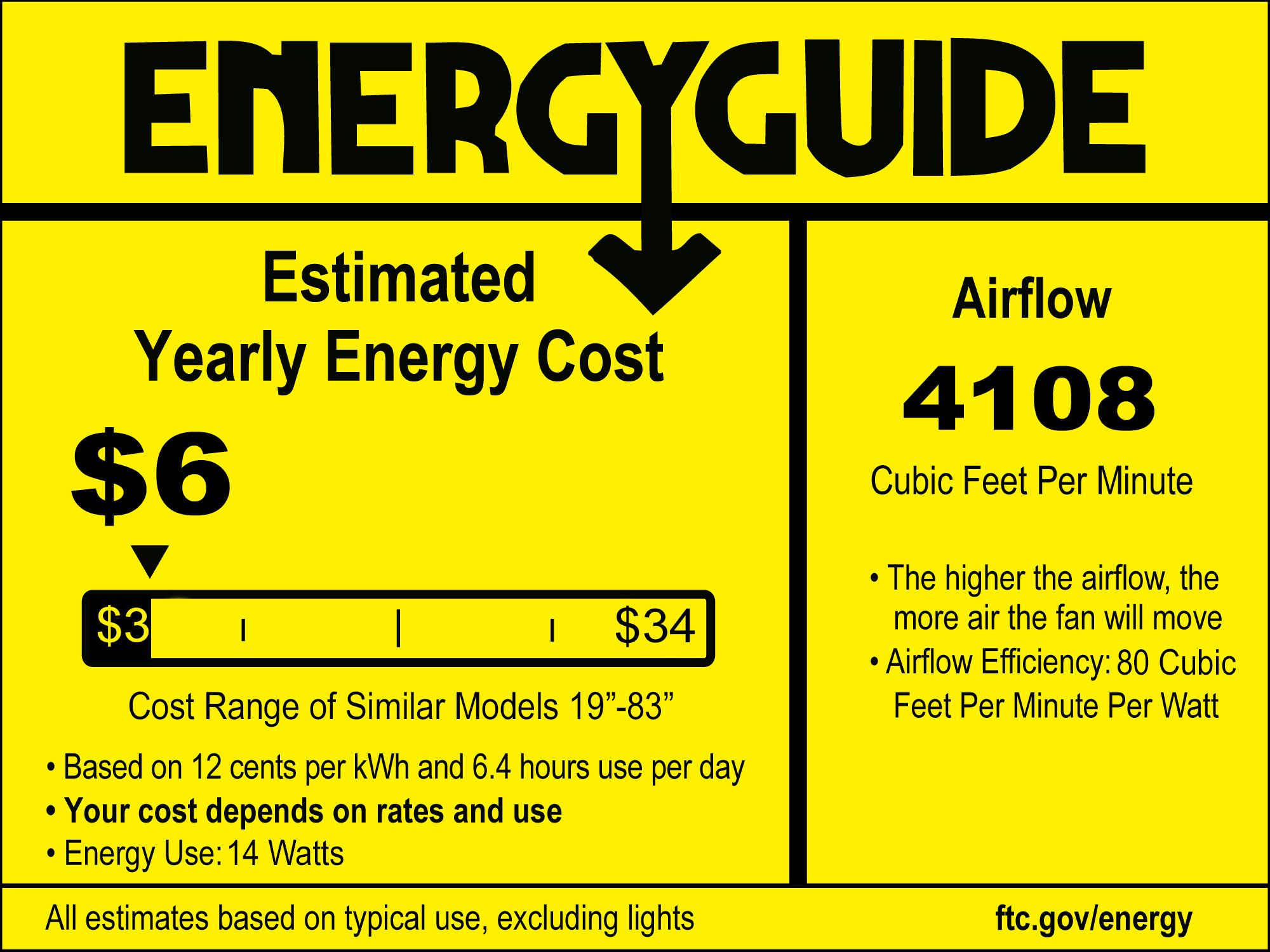 | Airflow | 4108 (Avg CFM) / 5987 (High CFM) |