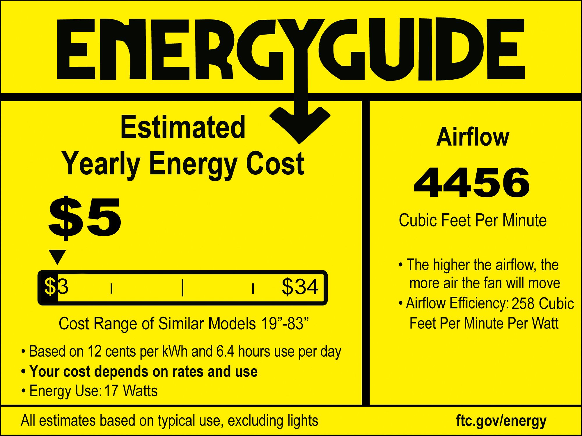 | Airflow | 4456 (Avg CFM) / 7490 (High CFM) |