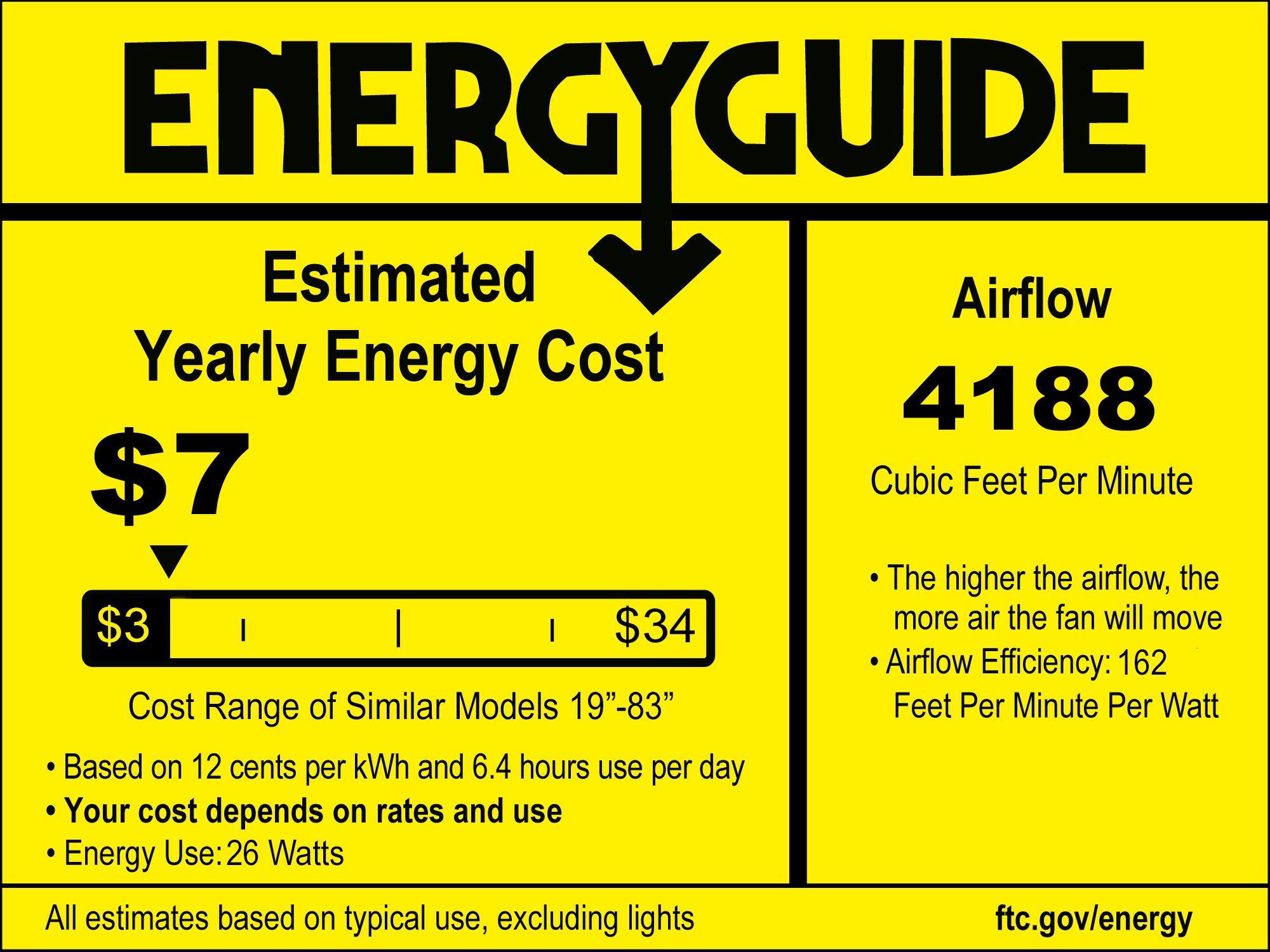 | Airflow | 4188 (Avg CFM) / 5696 (High CFM) |