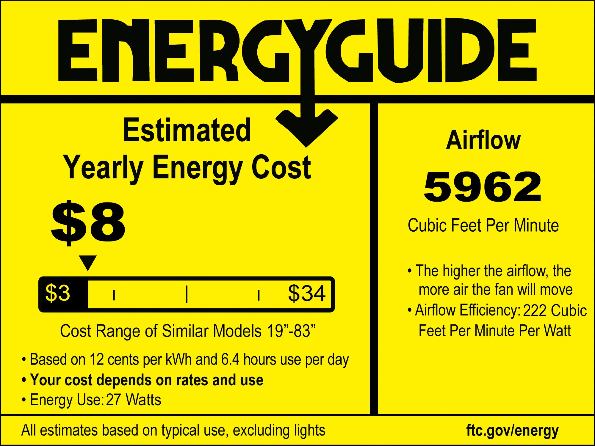 AirflowEfficiency 27 (Avg Watt) / 45 (High Watt)
