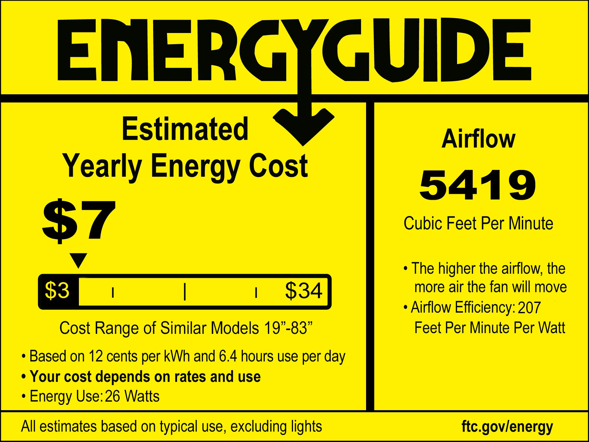 | Airflow | 5419 (Avg CFM) / 7726 (High CFM) |