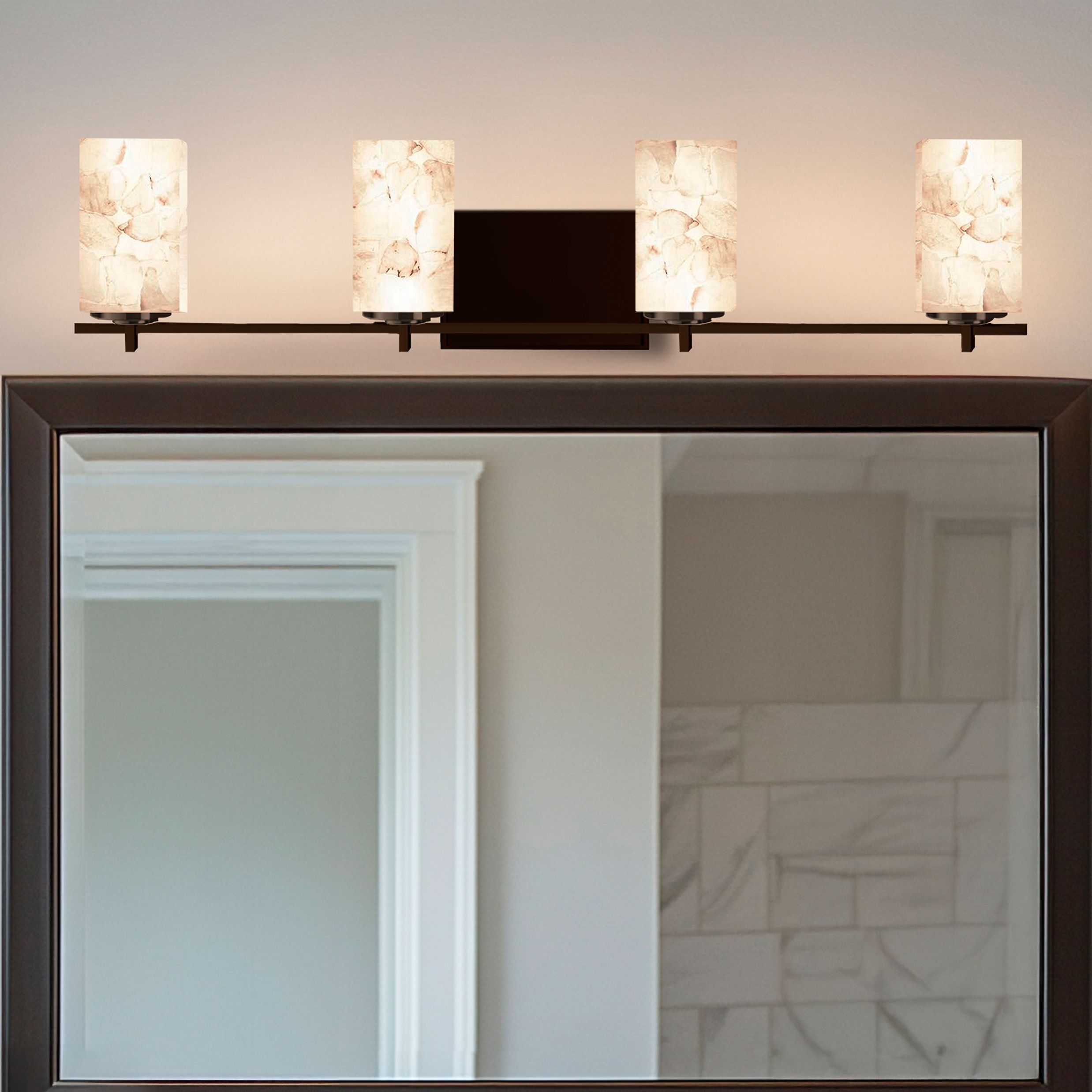 Alabaster Rocks! - Era 4-Light Square Bath Bar - Flat Rim Shade - Bronze