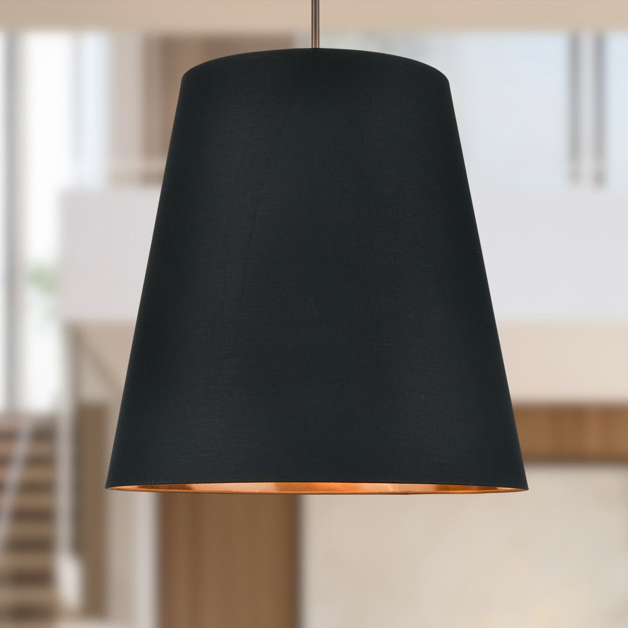 Alora Calor E26 30-in Black Linen With Gold Parchment/Urban Bronze Pendant