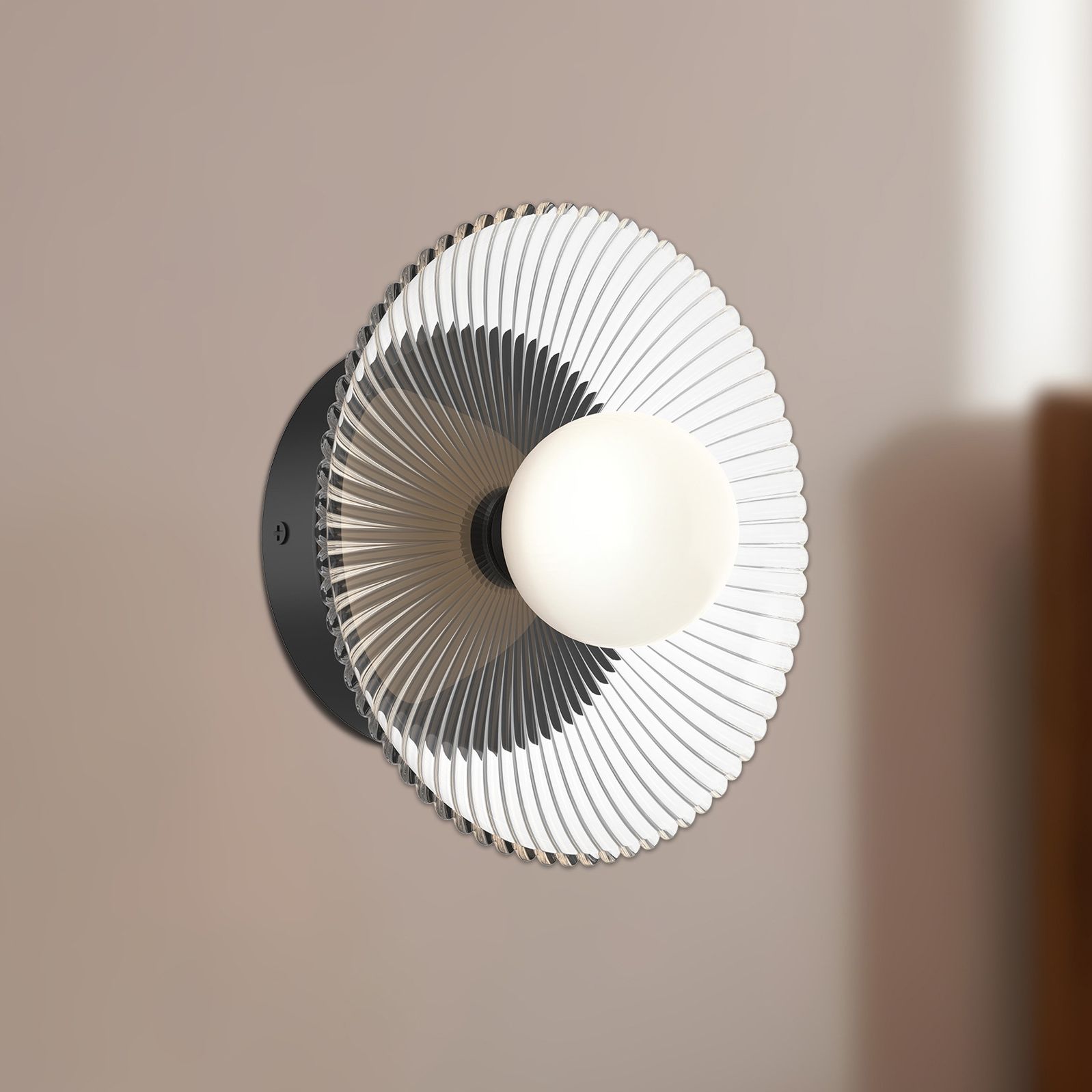 Alora Mood Hera LED 9-in Matte Black/Clear Ribbed Glass Wall Vanity