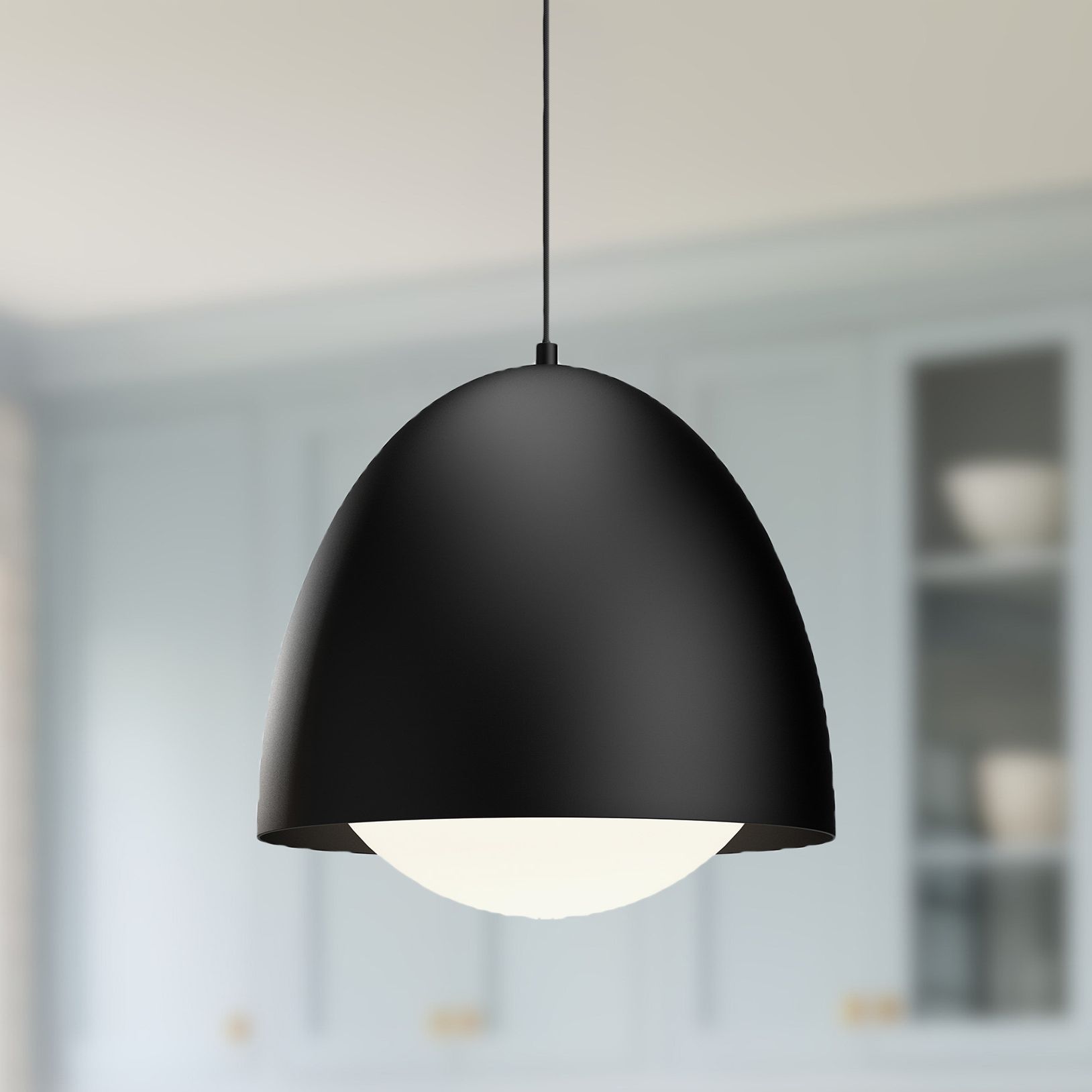 Alora Mood Kenji E26 16-in Matte Black/Opal Matte Glass Pendant