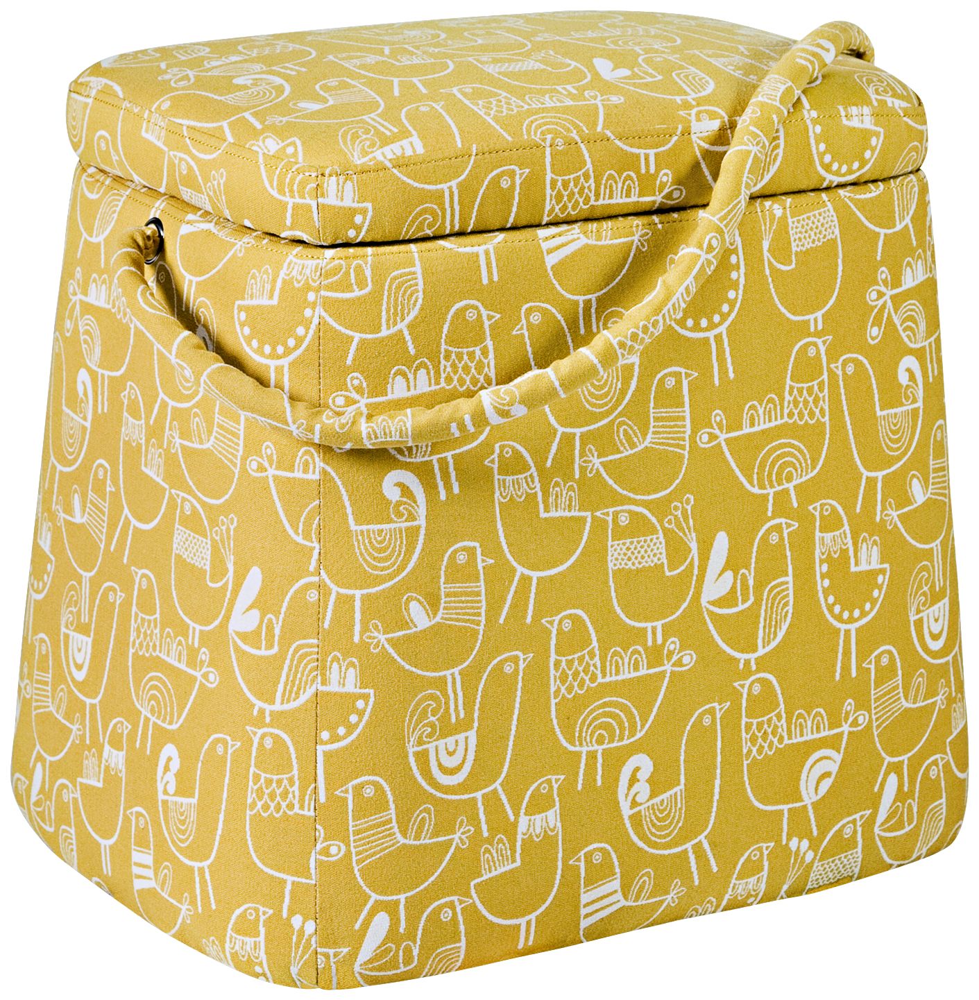 Accentuate your living room décor with the vibrant appearance of this contemporary storage ottoman. The yellow and cream polyester upholstery with whimsical bird pattern gives this ottoman with useful interior storage space an eye-catching appearance to provide balance to your decor.