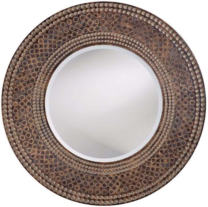 This sophisticated wall mirror features a complex finish and a textured look. The beaded frame is presented with an antique faux maple and oak wood finish. This glamorous design will add style and dimension to any room.