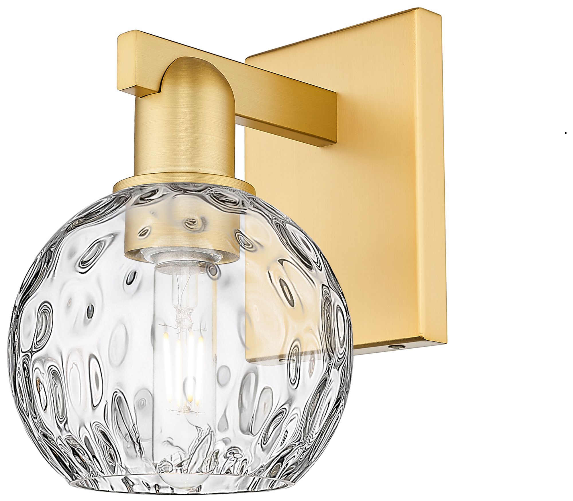 Arcadia Athens 10" High Satin Gold Sconce With Water Glass Shade