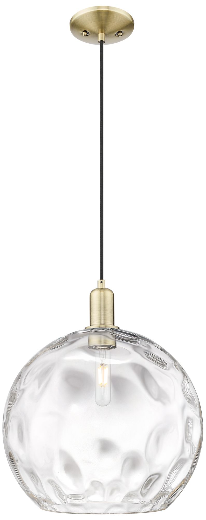 Arcadia Athens 13"W Brass Cord Hung Mini Pendant w/ Water Glass Shade