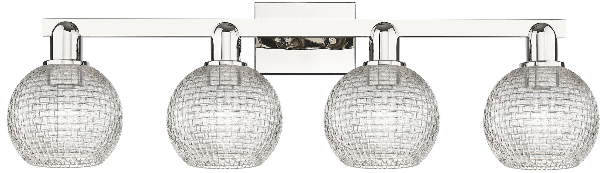 1_Arcadia Athens 33"W 4-Lt Polished Nickel Vanity w/ Basketweave Shade