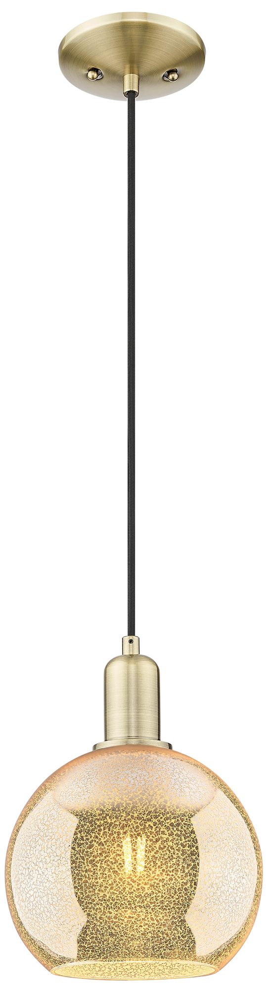 1_Arcadia Athens 8"W Brass Cord Hung Mini Pendant With Mercury Shade