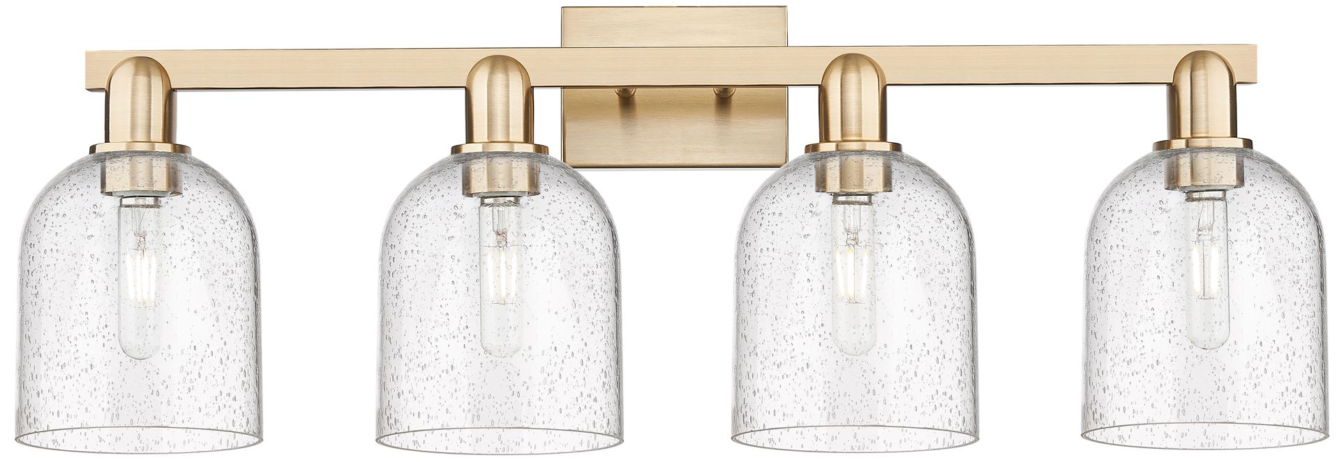 Arcadia Bella 33"W 4 Light Bronze Vanity Light w/ Seedy Shade