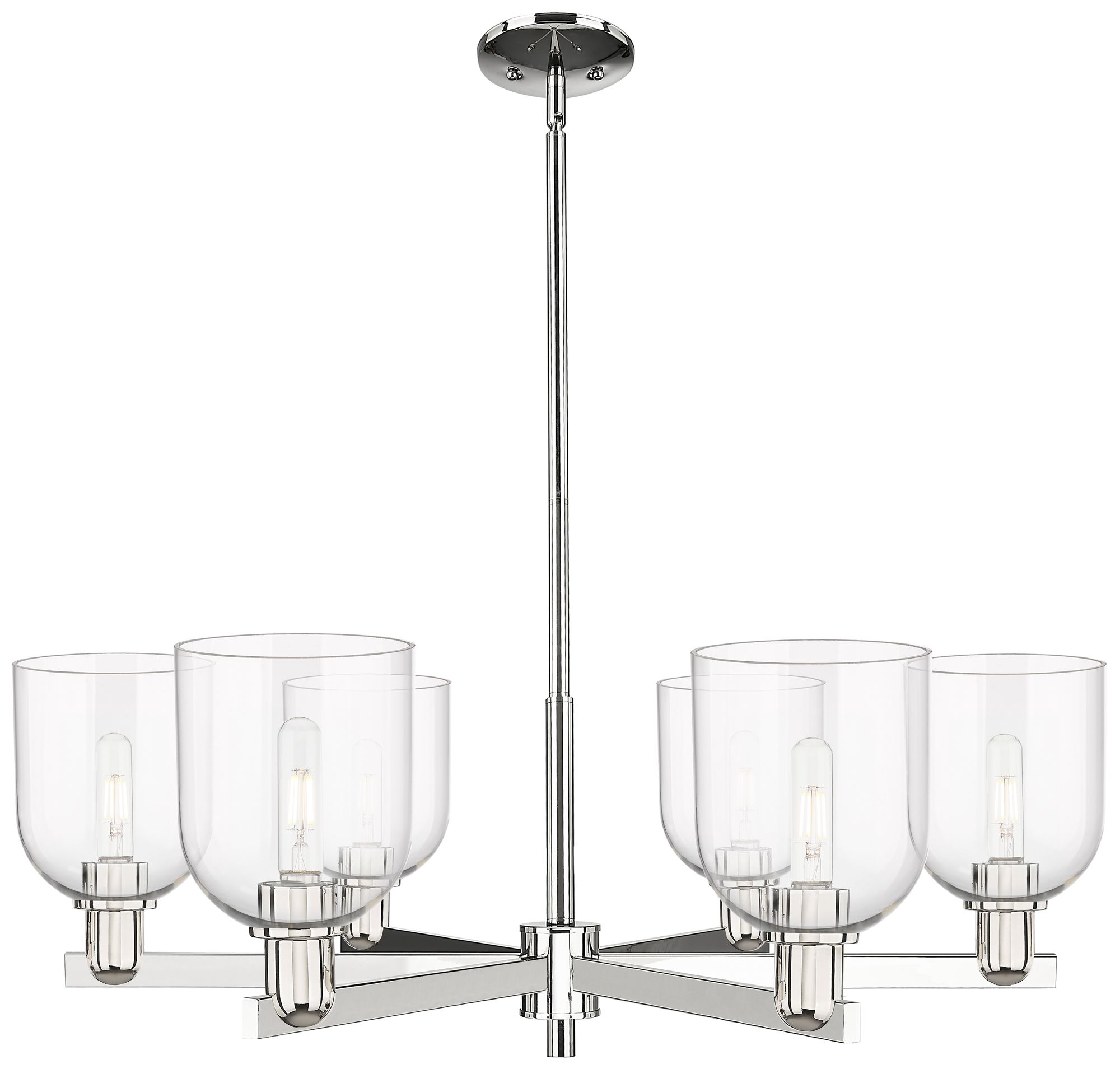 Arcadia Bella 35"W 6-Lt Polished Nickel Stem Chandelier w/ Clear Shade