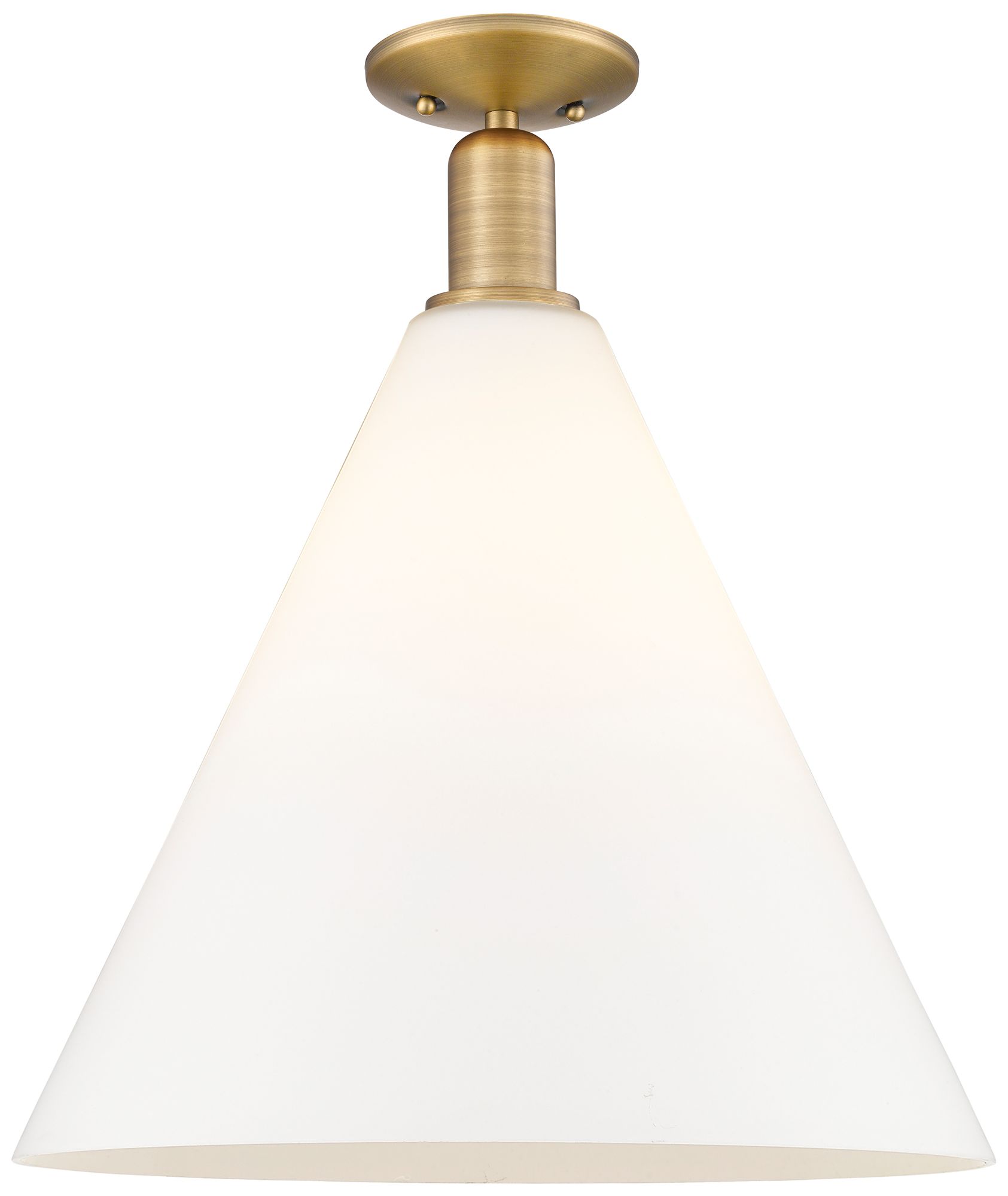 Arcadia Berkshire Glass 16"W Brushed Brass Semi-Flush w/ White Shade
