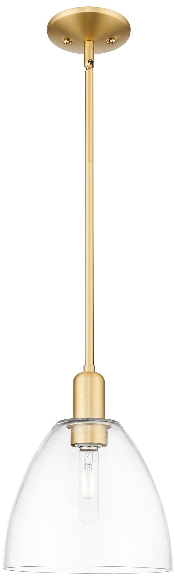 Arcadia Bristol 9"W Satin Gold Stem Hung Mini Pendant With Clear Shade