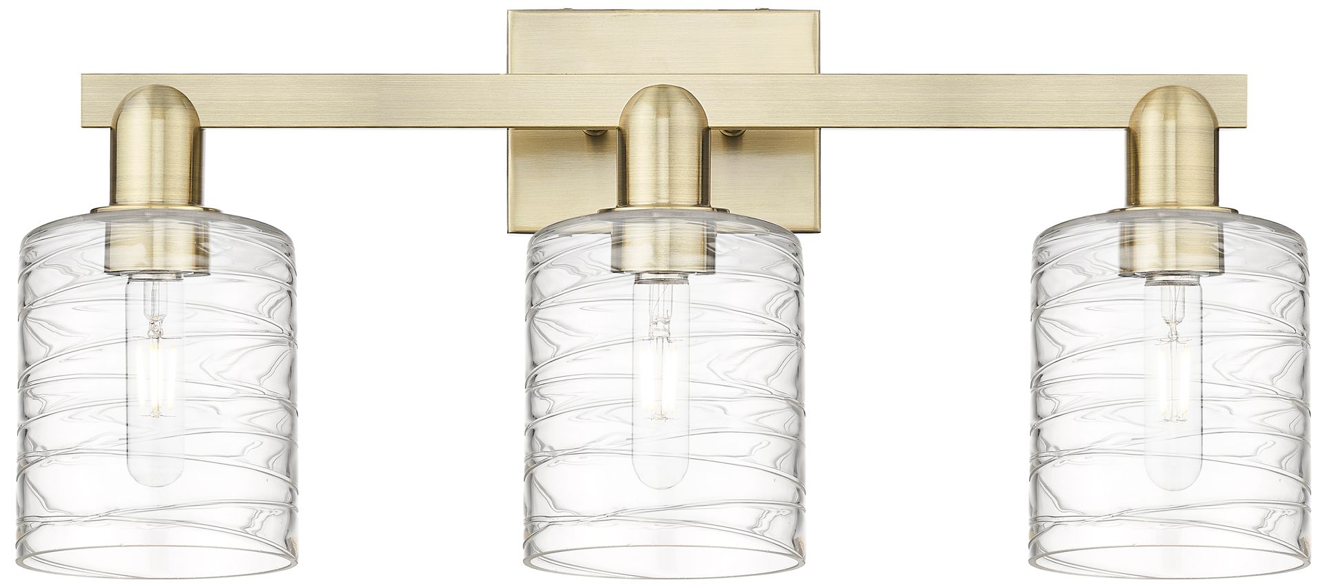Arcadia Cobbleskill 24"W 3 Light Brass Bath Light w/ Deco Swirl Shade