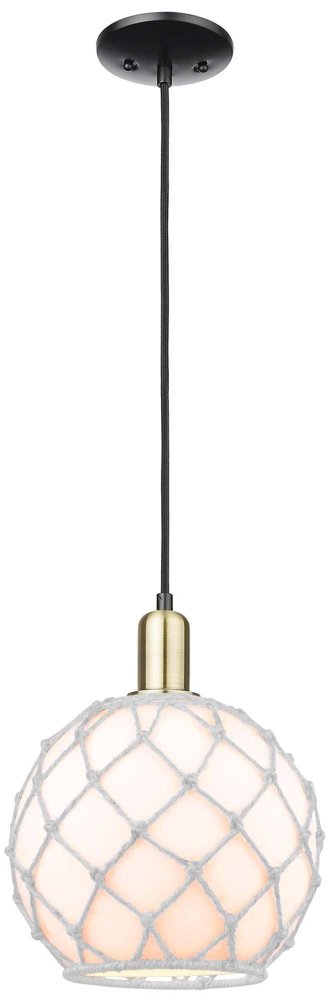 Arcadia Farmhouse Rope 10"W Black Brass Cord Pendant w/ White Shade