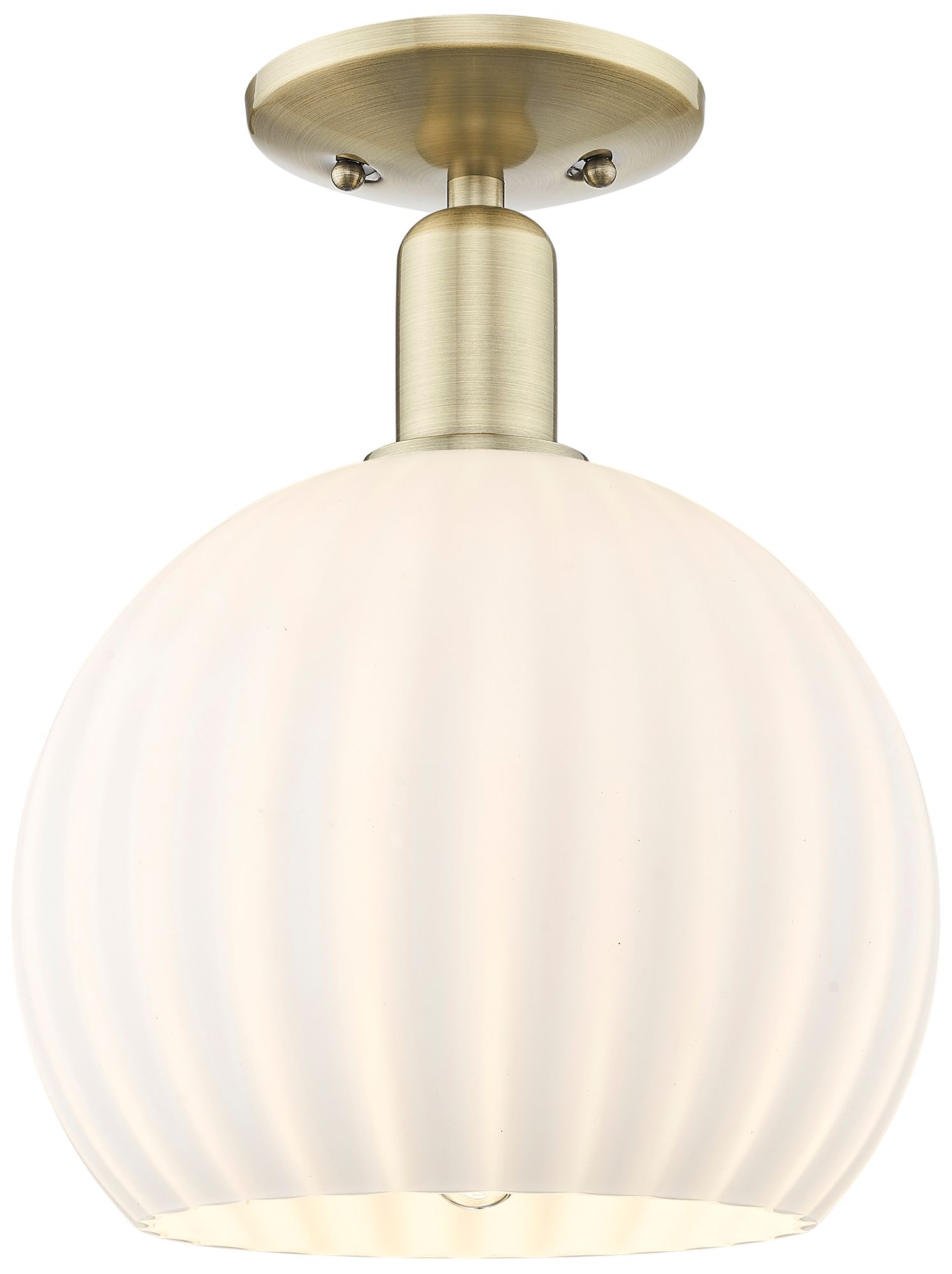 Arcadia White Venetian 10" Wide Antique Brass Semi.Flush Mount With