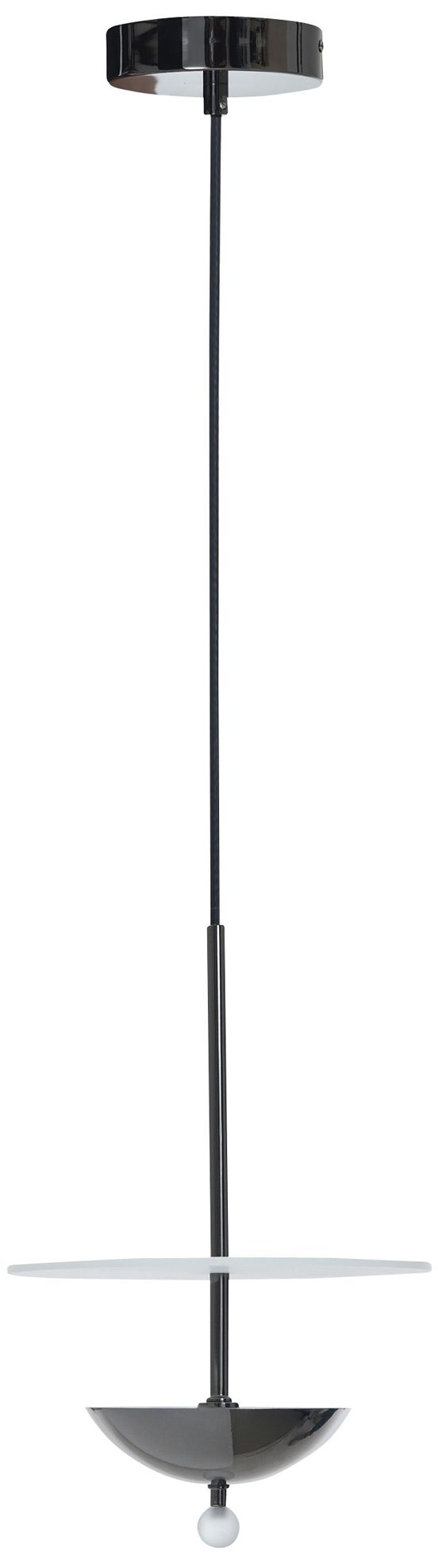 A sleek metal stem supports a floating acrylic disk above a half-sphere shade, finished with a frosted glass orb that diffuses a soft ambient glow. Its clean geometry and minimalist lines make it ideal for modern, architectural, or gallery-inspired interiors. The Astor Pendant brings refined drama to dining spaces, entryways, and hallways alike.