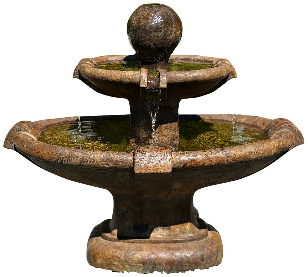 An energy efficient LED light kit adds radiant ambiance to a modern outdoor water fountain. Its tiered bowl design is topped with an orb from which water bubbles, creating a rich layered effect in your front or back yard. Its oblong shape complements a range of spaces, offering timeless elegance in any setting.