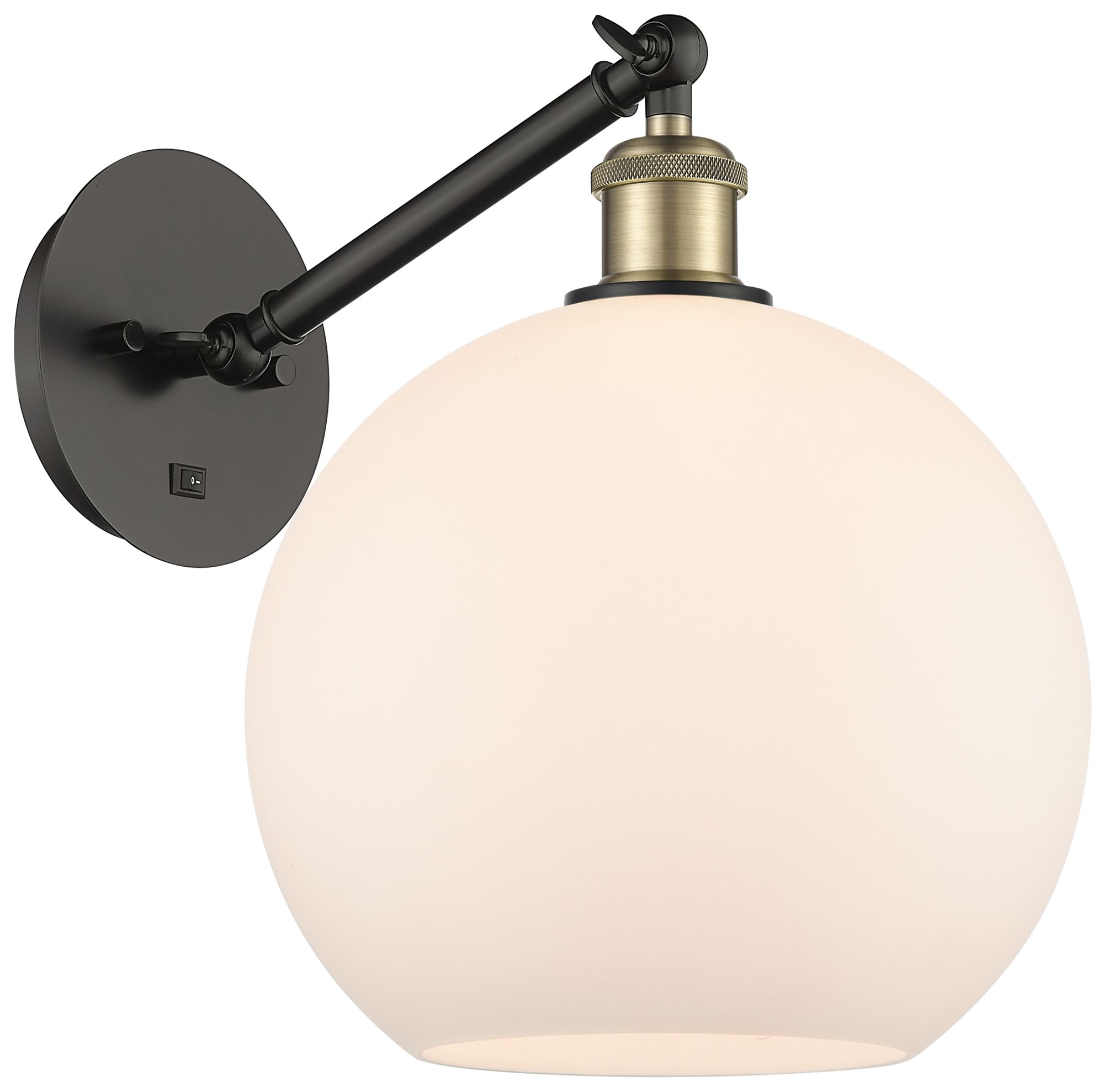 Athens 12" High Black Antique Brass Adjustable Sconce w/ Matte White Shade