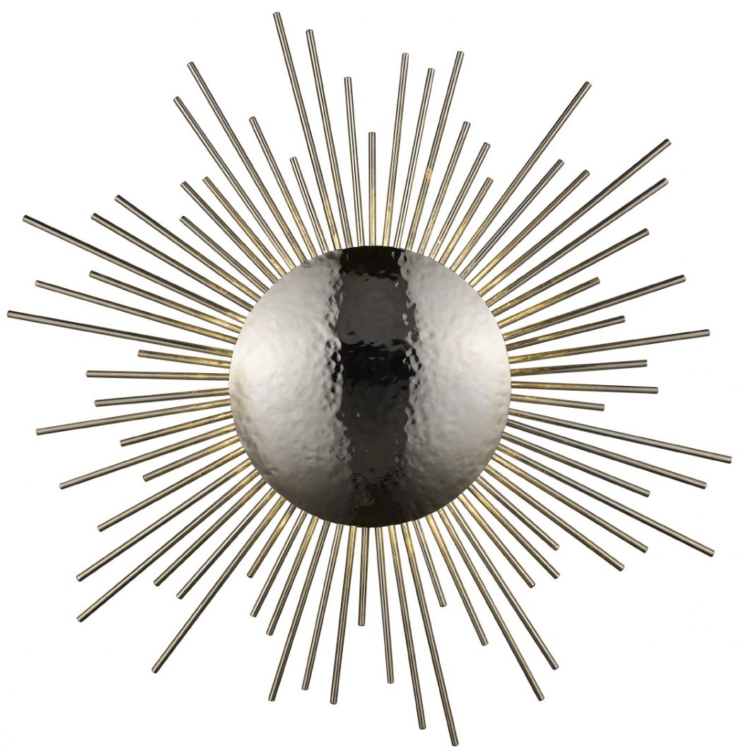 The Marquee collection features a remarkable burst of light from its spherical shade ingulfed with decorative metal rods. This fixture offers a unique way to diffuse a broad surface of light to any space. This fixture comes in Hammered Polished Nickel.
