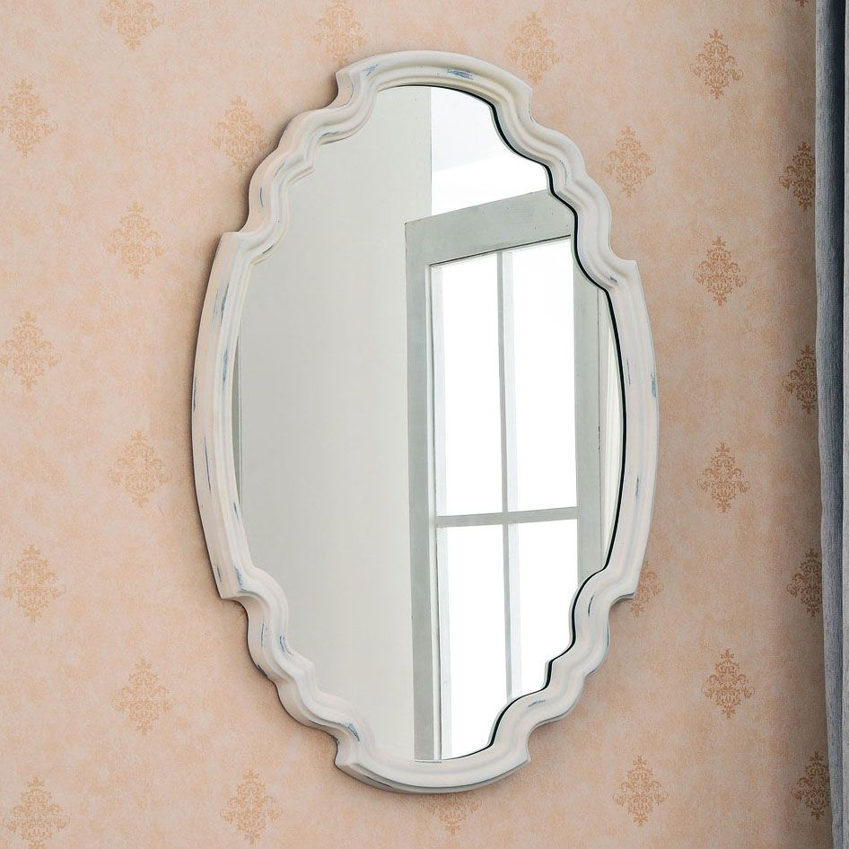 Pour on the charm with a stylish and nostalgia-inspired mirror. From Kenroy Home comes a luscious oval wall mirror with a decorative shape. Lovely antique white supplies a soft finish that blends with any palette. This wall mirror may be mounted vertically or horizontally.
