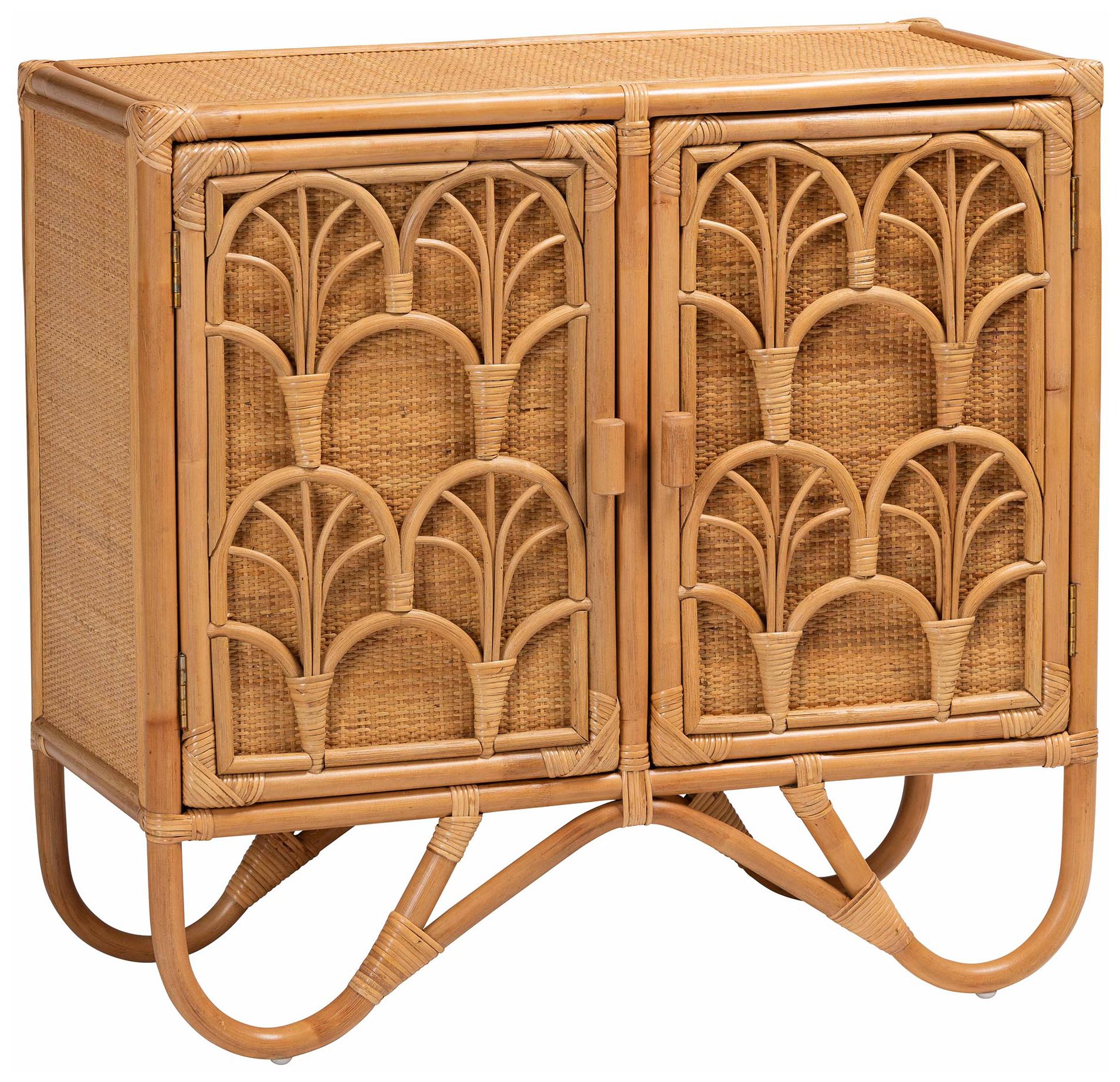 bali & pari Baylor Bohemian Light Honey Rattan Storage Cabinet