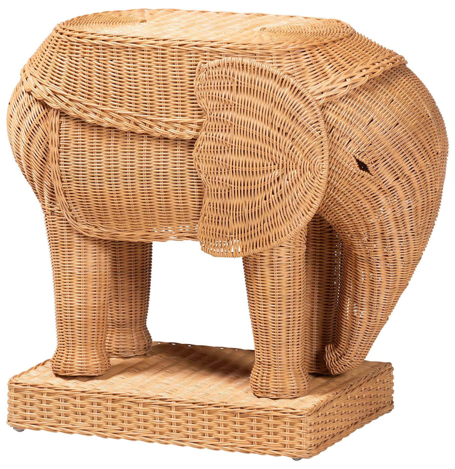 bali & pari Elissa Bohemian Light Honey Rattan Elephant End Table