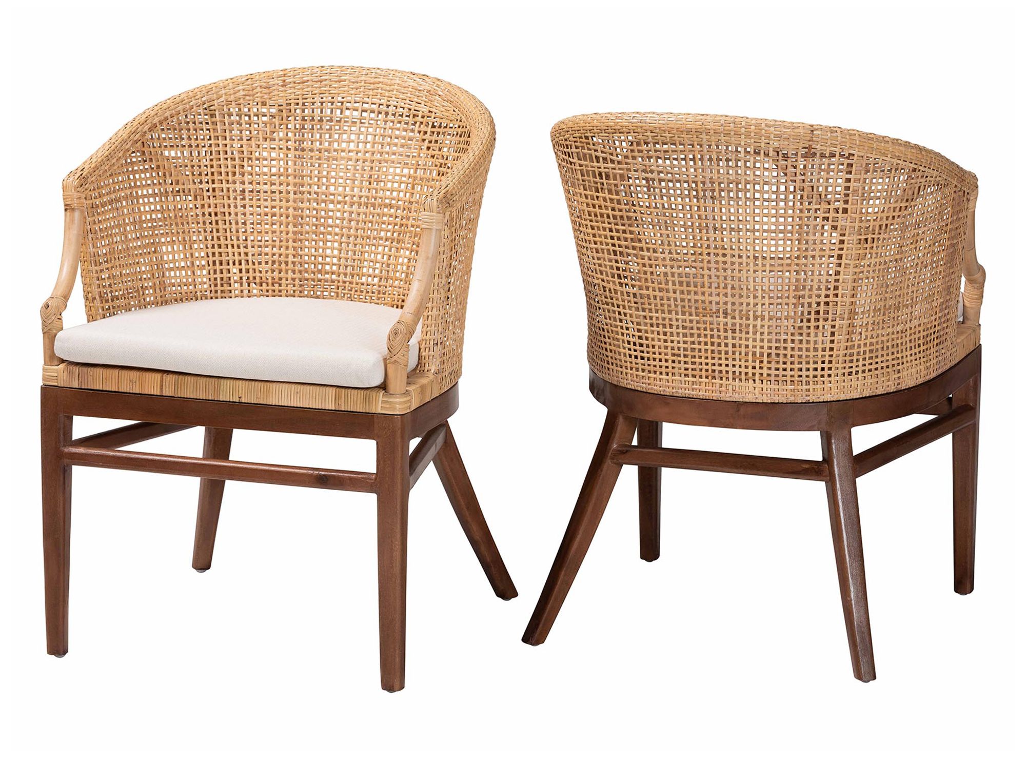 bali & pari Lumajang Bohemian Rattan and Wood 2 Piece Dining Chair Set