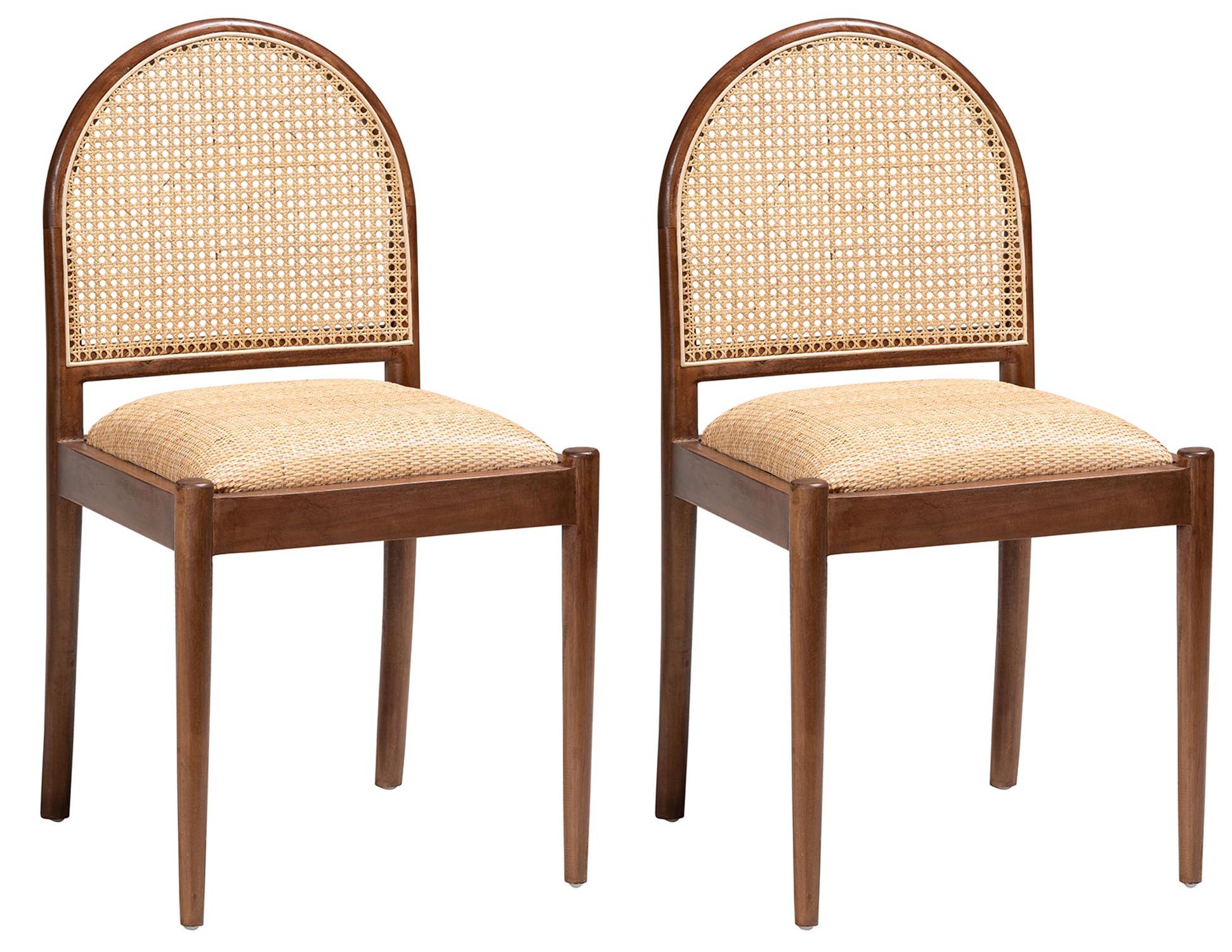 bali & pari Maryland Rattan and Acacia Wood 2 Piece Dining Chair Set