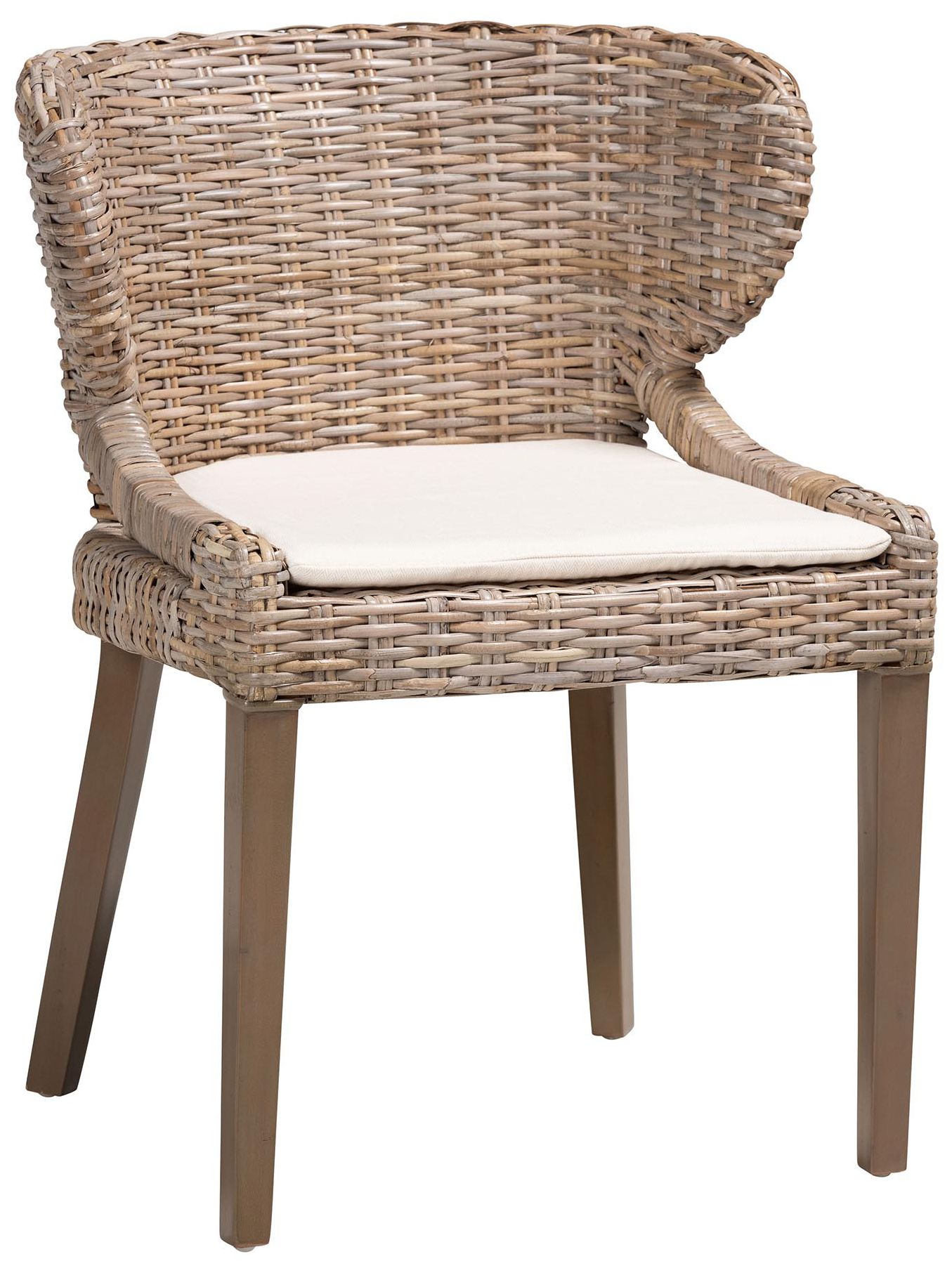 bali & pari Niesha Grey Natural Kubu Rattan and Mahogany Wood Dining Ch