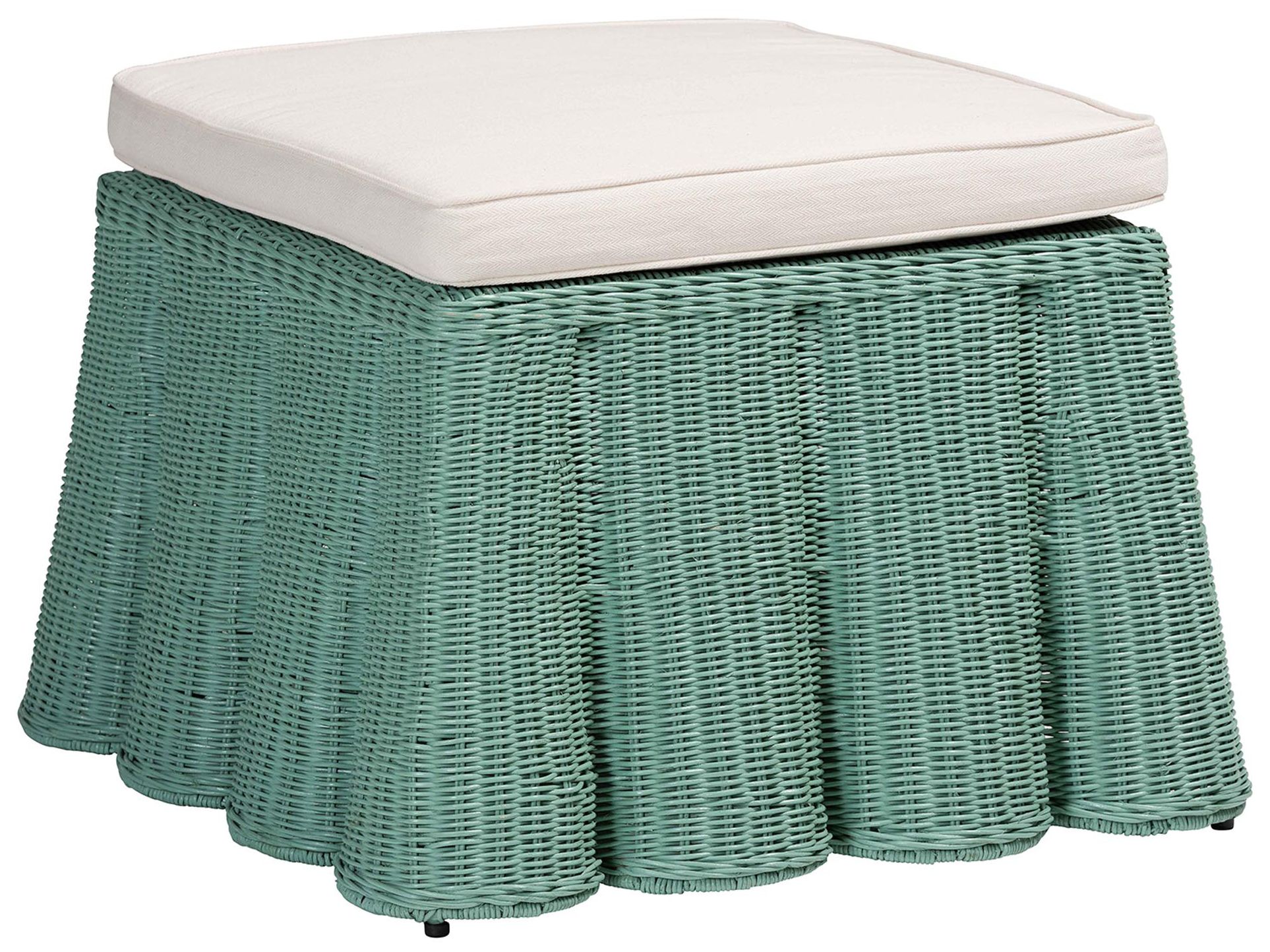 bali & pari Palm Bohemian Seafoam Green Scallop Rattan Ottoman