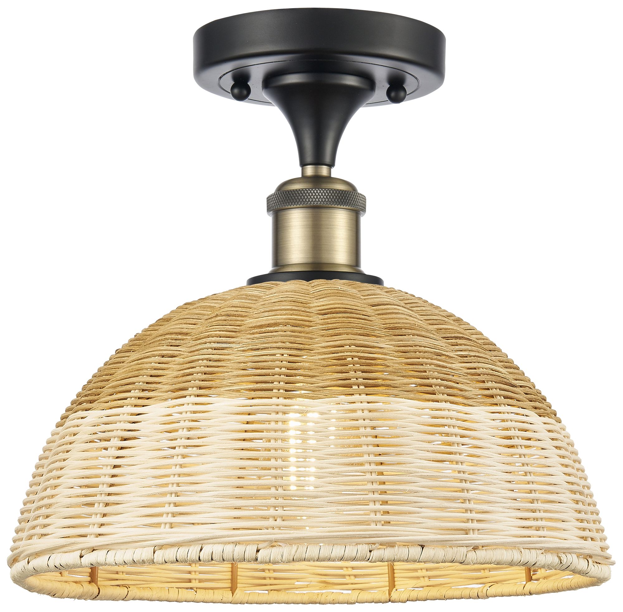 Ballston Bristol Natural II 12"W Black Antique Brass Semi.Flush Mount