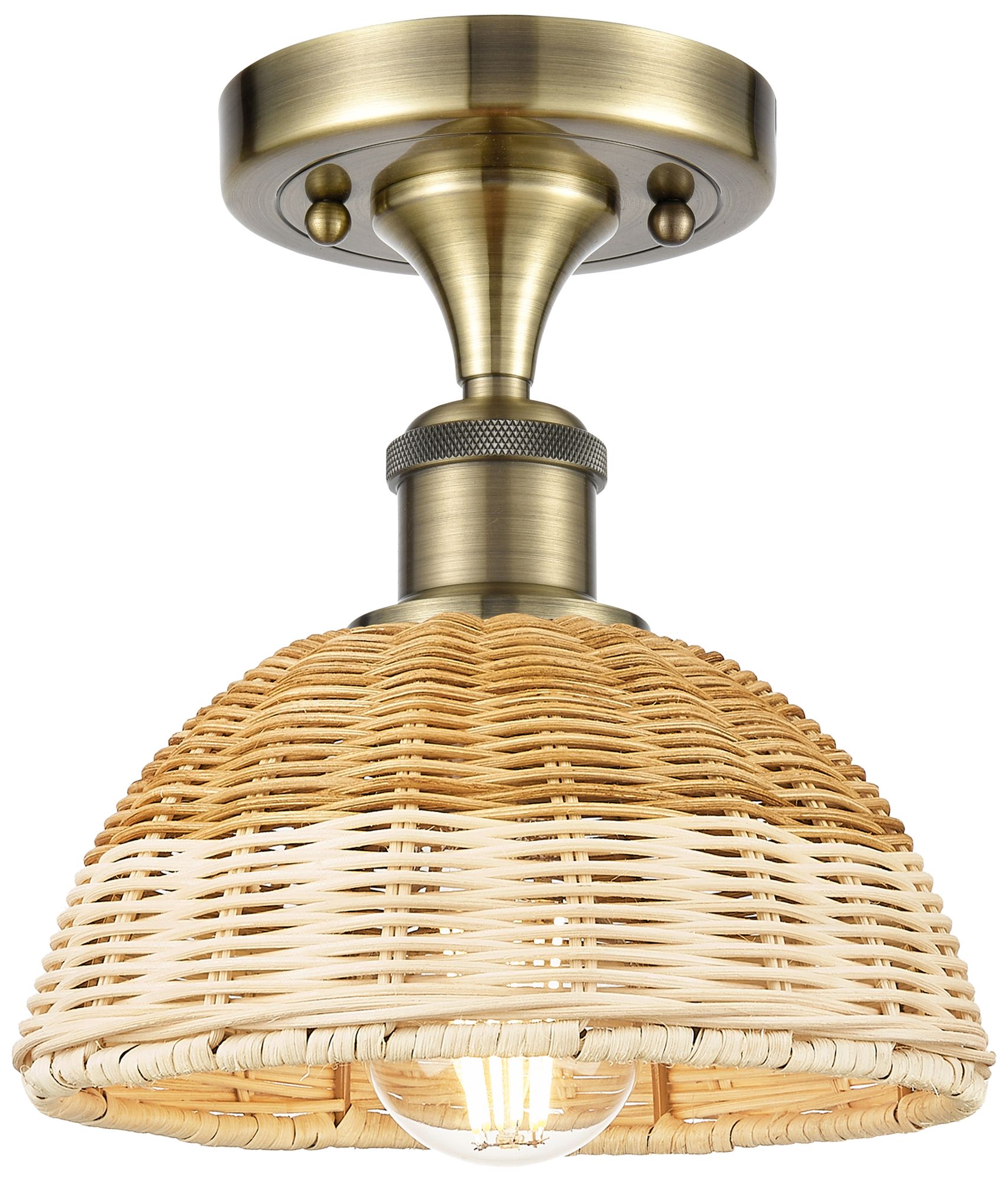 Image 1 Ballston Bristol Natural II 8" Wide Antique Brass Semi.Flush Mount