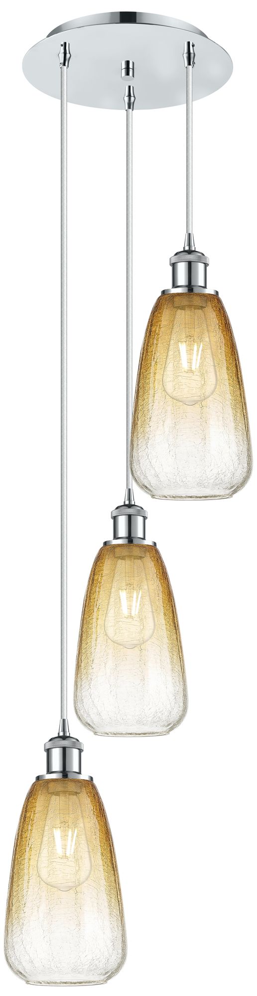 Ballston Brookhaven Almond 13"W 3-Lt Chrome Cord Pendant w/ Amber Shade