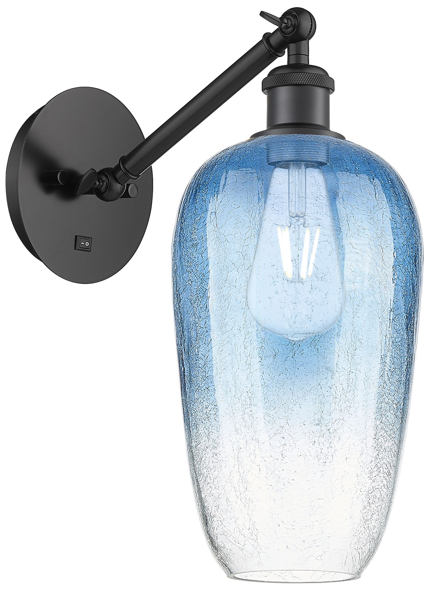 Ballston Brookhaven Flute 15"H Black Swivel Sconce w/ Sapphire Shade