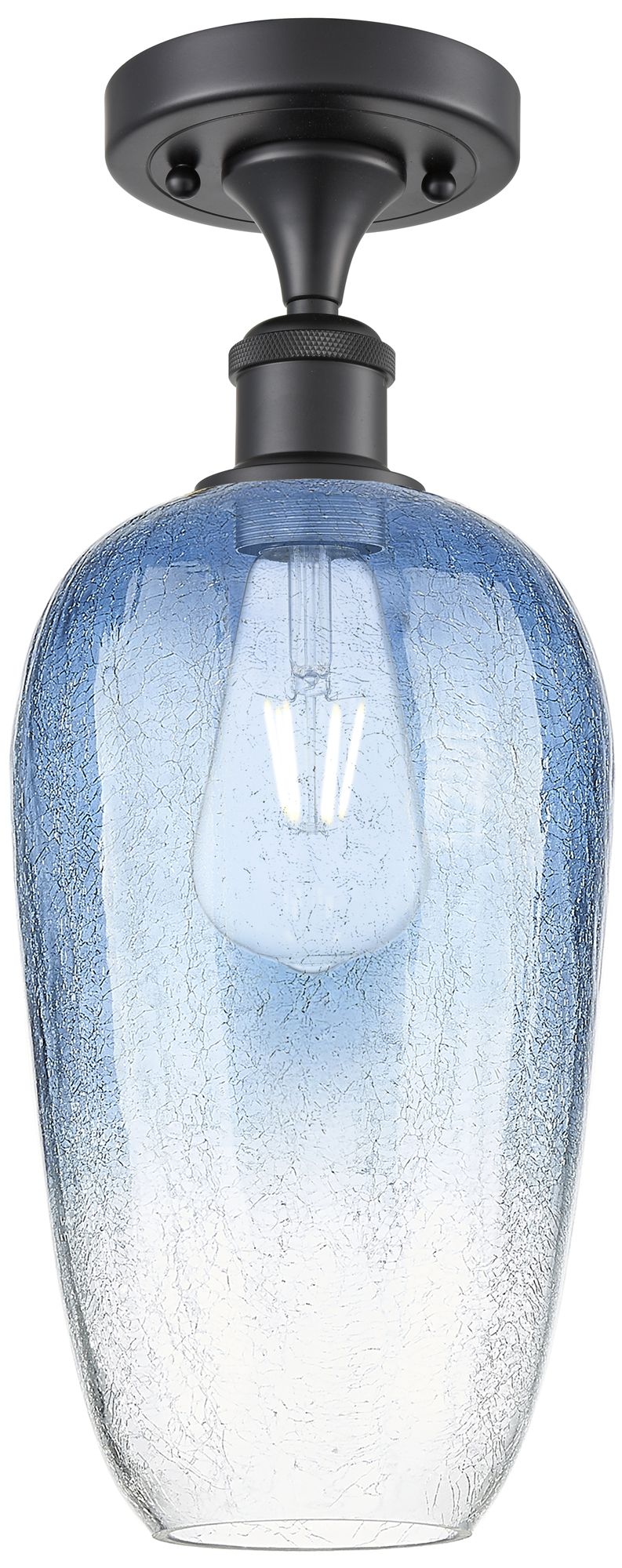 Ballston Brookhaven Flute 7"W Black Semi.Flush Mount w/ Sapphire Shade
