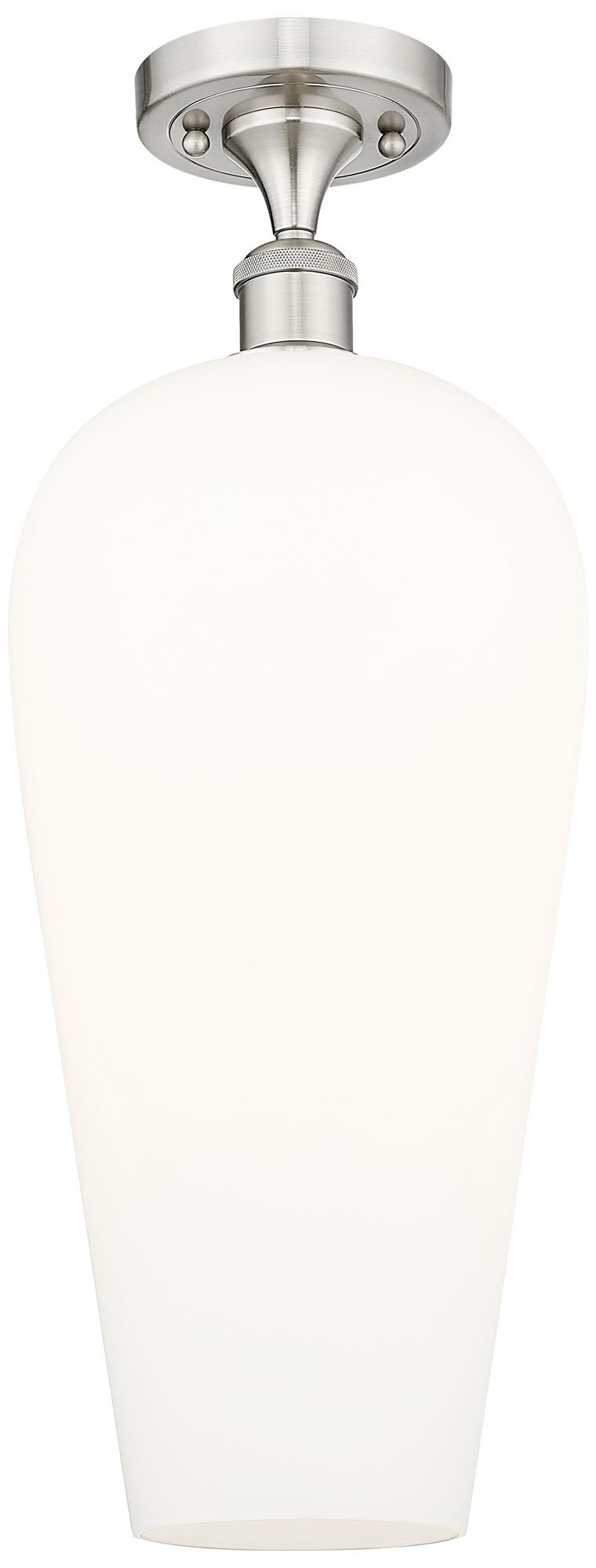 Ballston Chelsea 8"W Brushed Nickel Semi.Flush Mount With White Shade