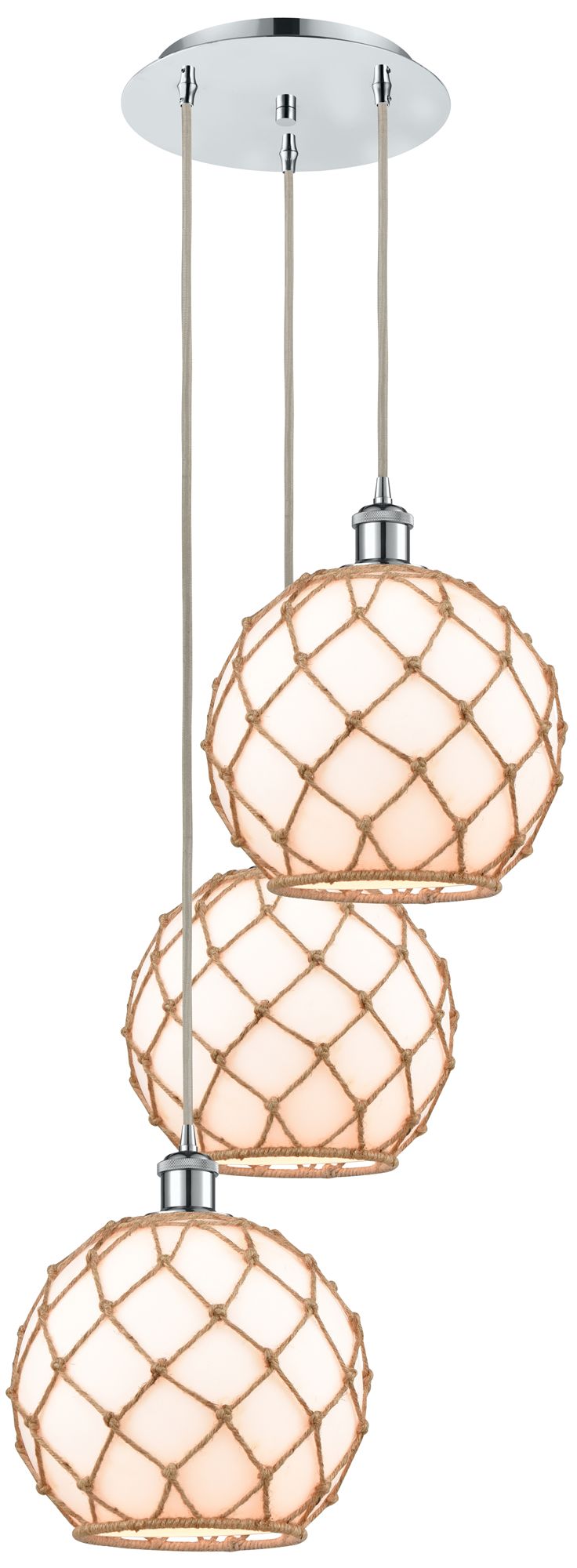 1_Ballston Farmhouse 17"W 3-Lt Chrome Cord Pendant w/ White Brown Shade