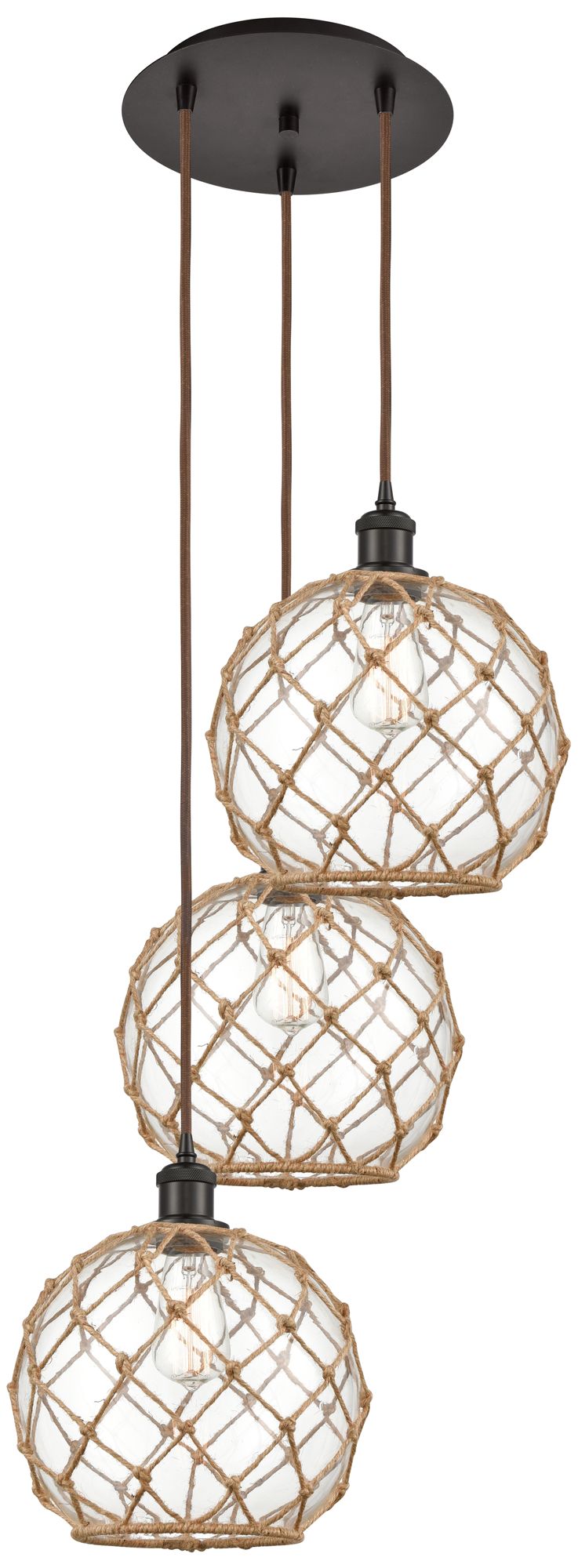 1_Ballston Farmhouse 17"W 3-Lt Oiled Bronze Cord Pendant w/ Clear Brown Shade