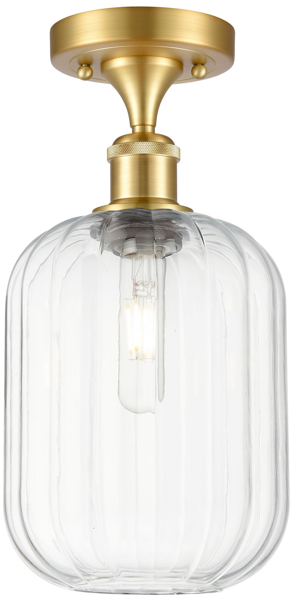Ballston Preston 7"W Satin Gold Semi.Flush Mount With Clear Jar Shade