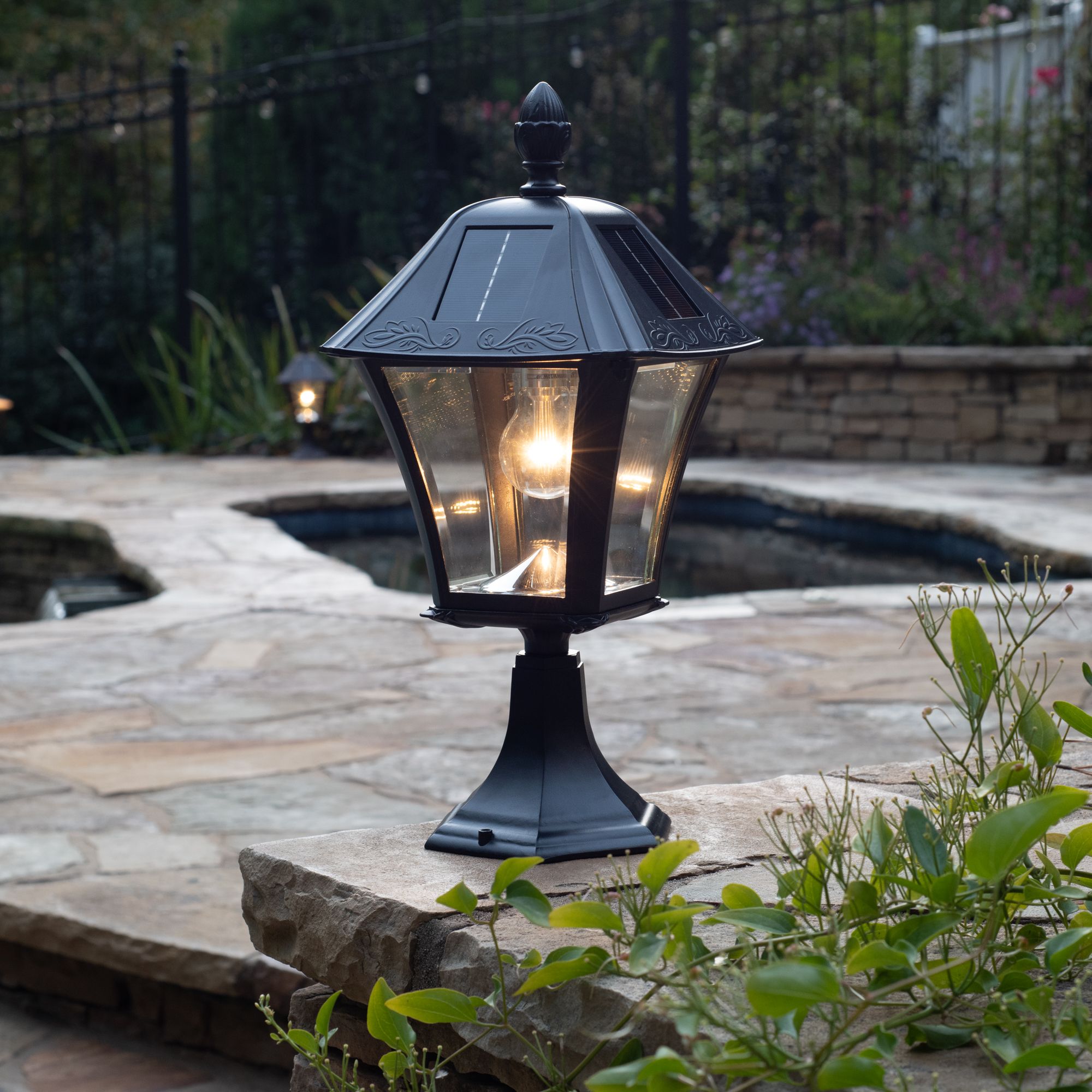 Powered by the sun, this solar LED post light delivers dusk-to-dawn illumination for up to 12 hours on a full charge. It features a classic silhouette crafted from weather-resistant cast aluminum in a powder coated black finish for lasting elegance. No electrical wiring is needed for this post light, which offers three versatile installation options, including post, flat/pier, and wall mounting to best suit your space.