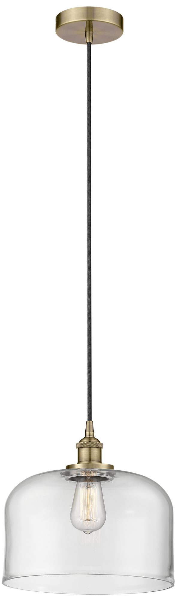 Bell 12" LED Mini Pendant - Antique Brass - Clear Shade