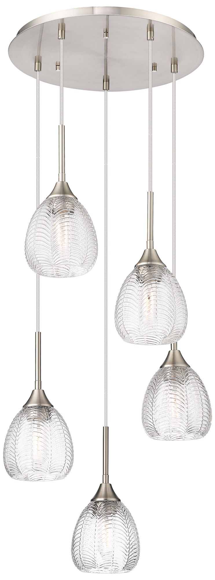 Berkshire 5 Light 19" Cord Hung Multi Pendant Satin Nickel Finish