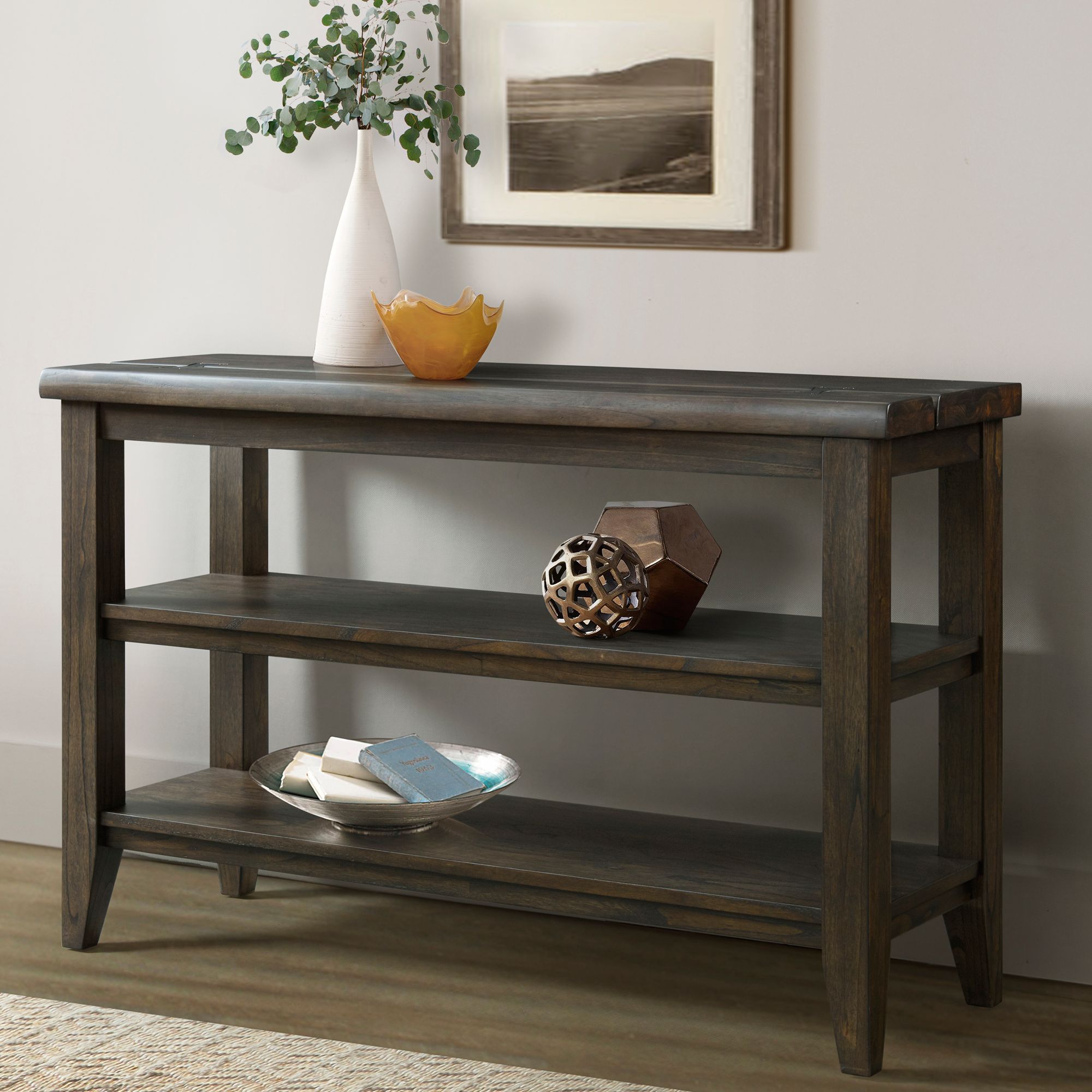 - Rustic two-shelf wood sofa table from the Big Sur collection.