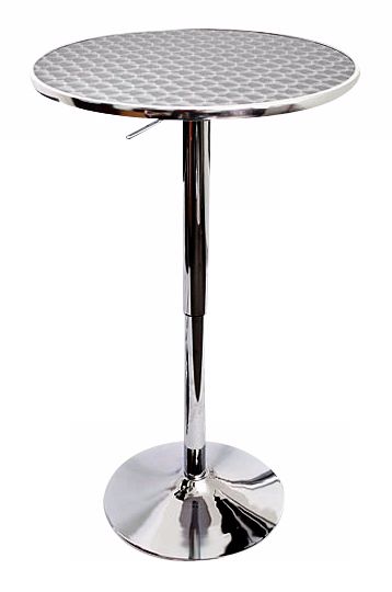 We love this little table for its stainless steel finish top and swirl design on top. The polished chrome base looks great with the steel-look. Perfect for smaller kitchens or eating areas, the height is adjustable hydraulically from 26" high to 41" high.