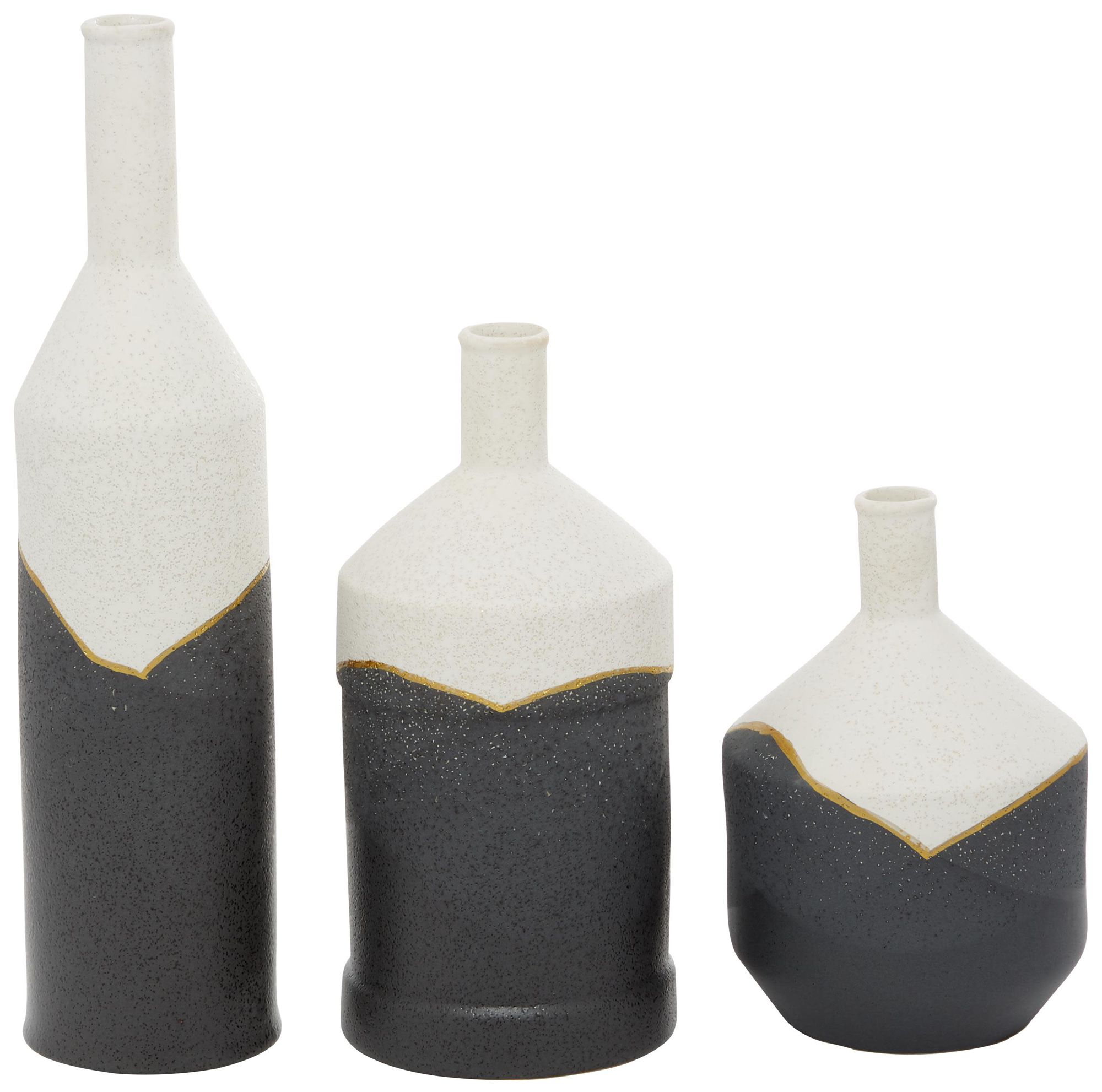 Black Ceramic Modern Vase, S/3 17", 12", 9"H