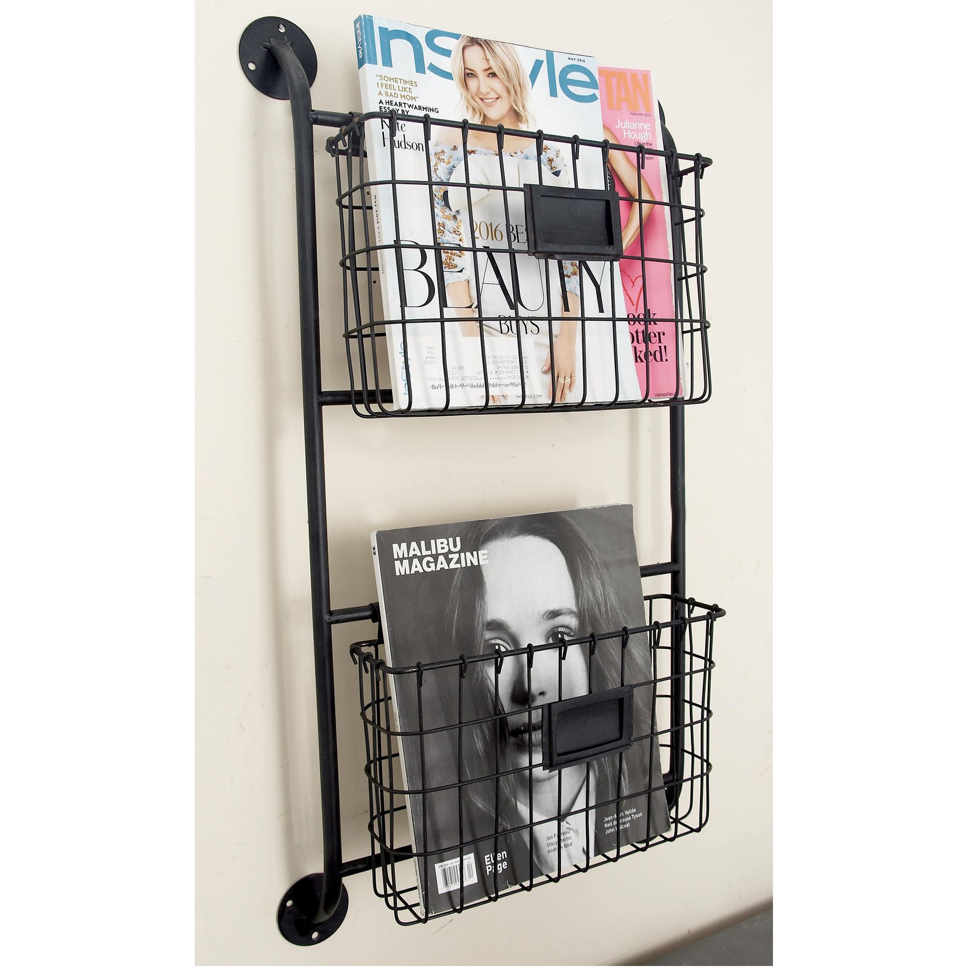 Black Metal Industrial Magazine Rack Holder, 16" x 3" x 28"